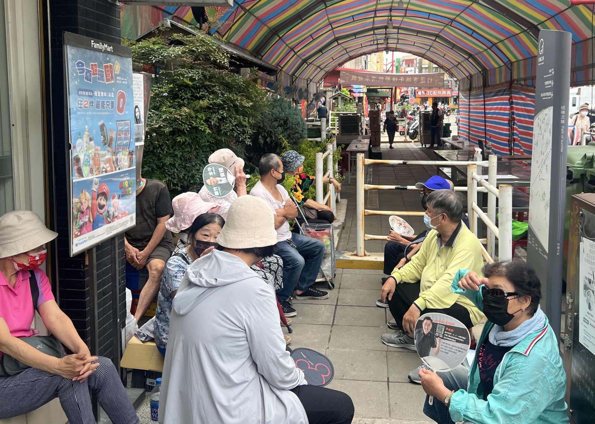 十一日端午節前夕竹蓮寺濟貪扶弱,需求救濟品人群倍增,上午十時開放發放救濟品,早上五、六點鐘出現人龍,不斷增長的隊伍中有老、有少,其中不少白髮蒼蒼長者,有些無法在長龍中久立,還自備小凳子。