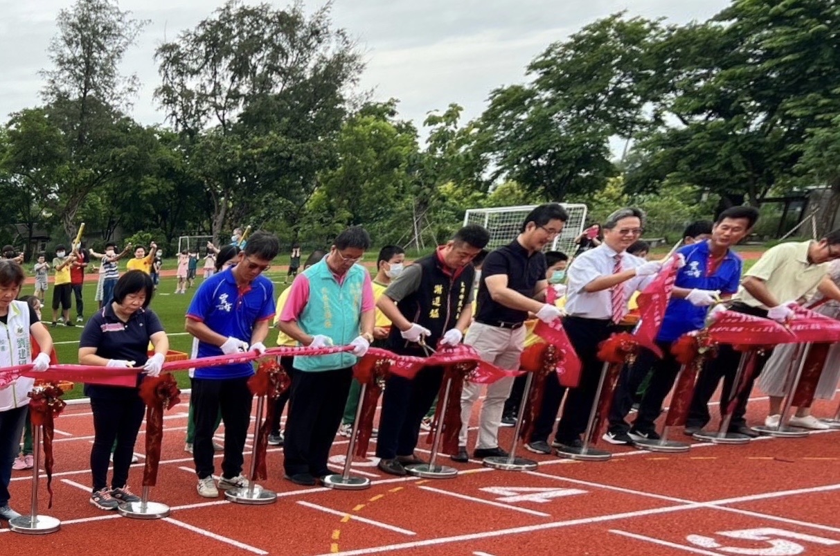 立委劉建國(右四)祝賀舊庄國小PU跑道啟用 圖∕劉建國團隊