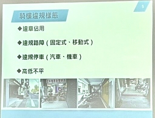 工務處指出,市府執行騎樓順平計畫,透過坡道順平騎樓高低差,排除騎樓違章佔用、路障。