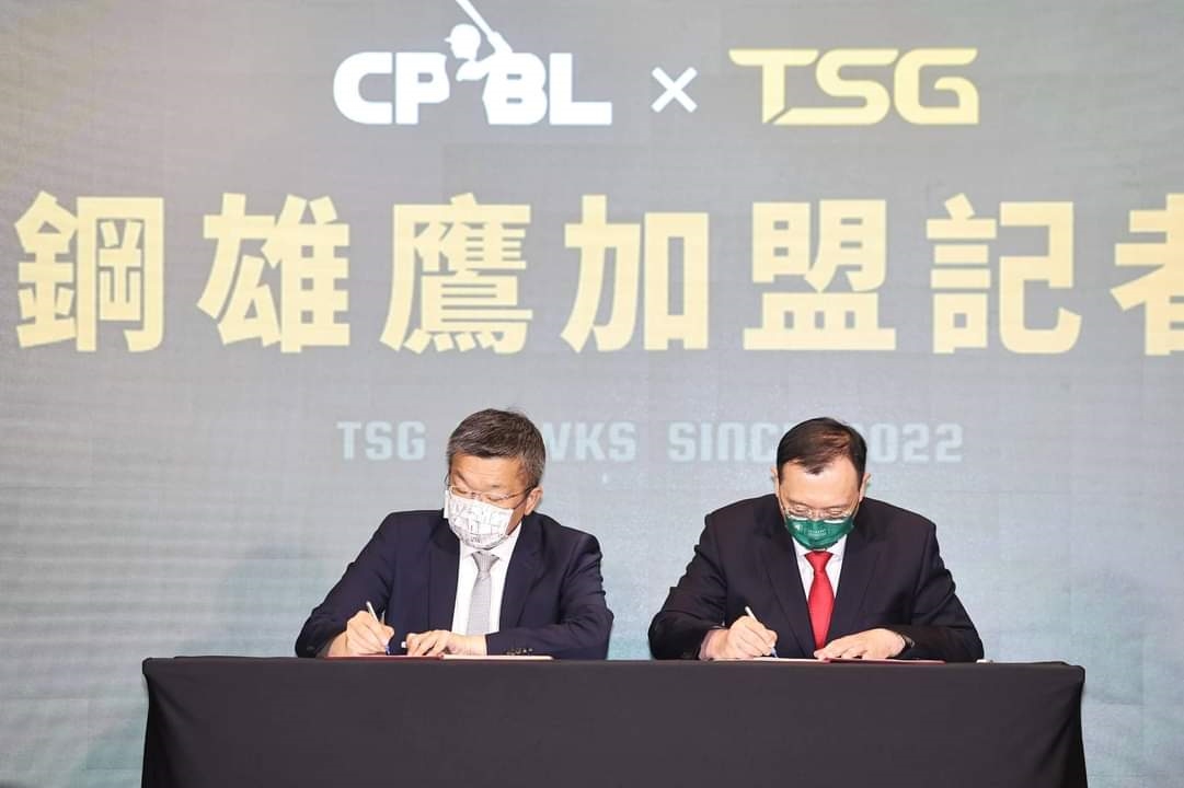 [記者魏伶如/台北報導]職棒新球團台鋼雄鷹於今(8)日完成加盟簽約儀式,正式成為中職第6隊,林振賢為統籌教練,隊徽由綠色為底搭配白色帶有羽毛圖案的英文「T」字。擔任中華職棒聯盟會長的立法院副院長蔡其昌表示,台鋼雄鷹以澄清湖棒球場為主場,高雄市長陳其邁已允諾與球團共同投入球場改建;台鋼集團會長謝裕民信心滿滿的說,要打造高雄成為南台灣棒球新樂園。
