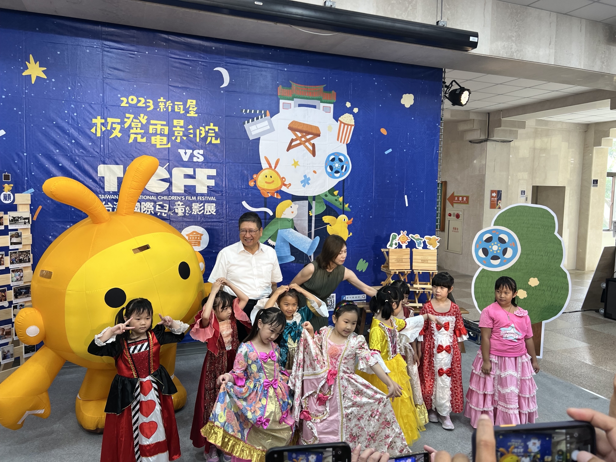 新瓦屋板凳電影院迎18一朵花歲月,縣長楊文科和小朋友逗陣同歡 何高祿攝