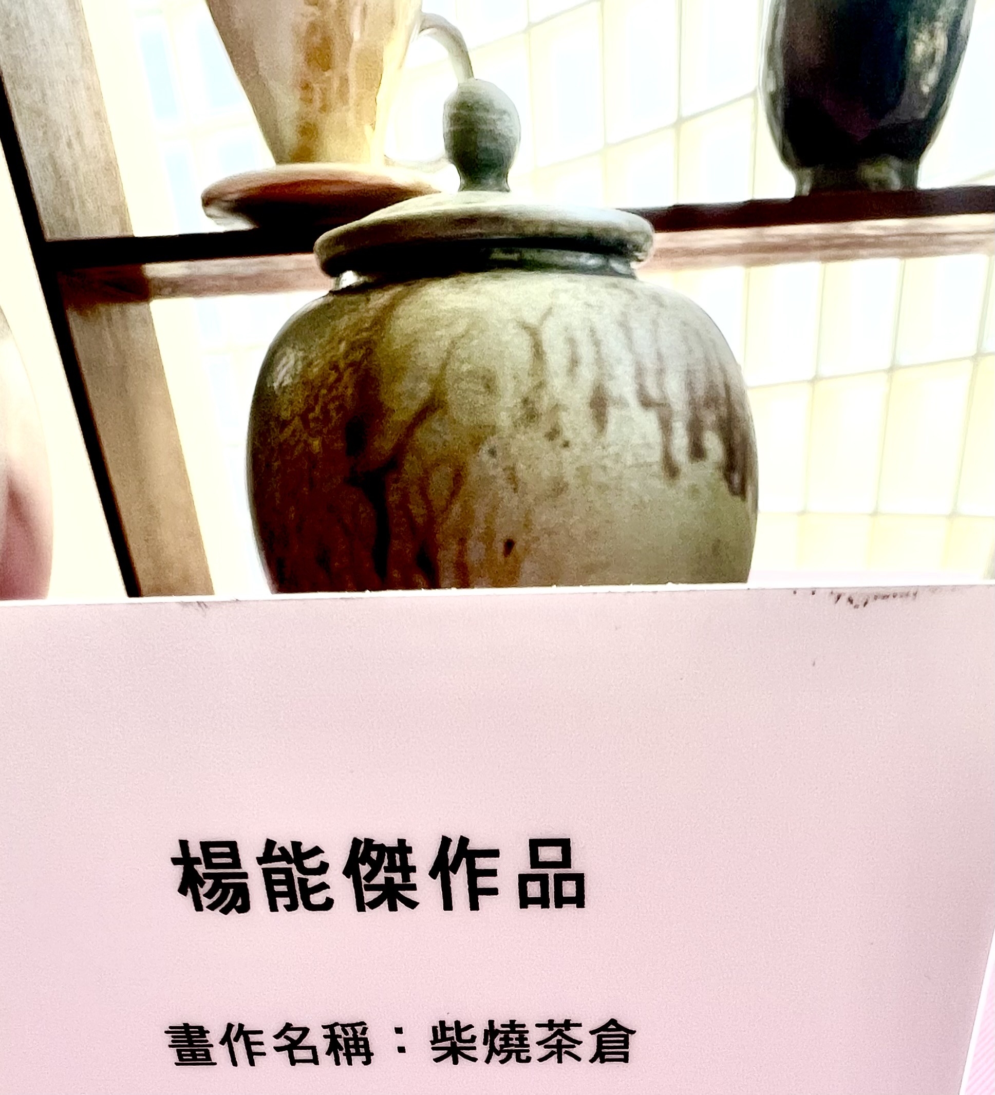 三十年來楊能傑將柴燒陶藝美學傳遞於自然生活,陶藝作品帶來生命力,帶動柴燒創作美好時光,分享在城市和鄉間有溫度感覺的展場,即使沒有溫度,經過他解說後,樣樣作品都有故事,件件陶藝散發出文藝氣息。