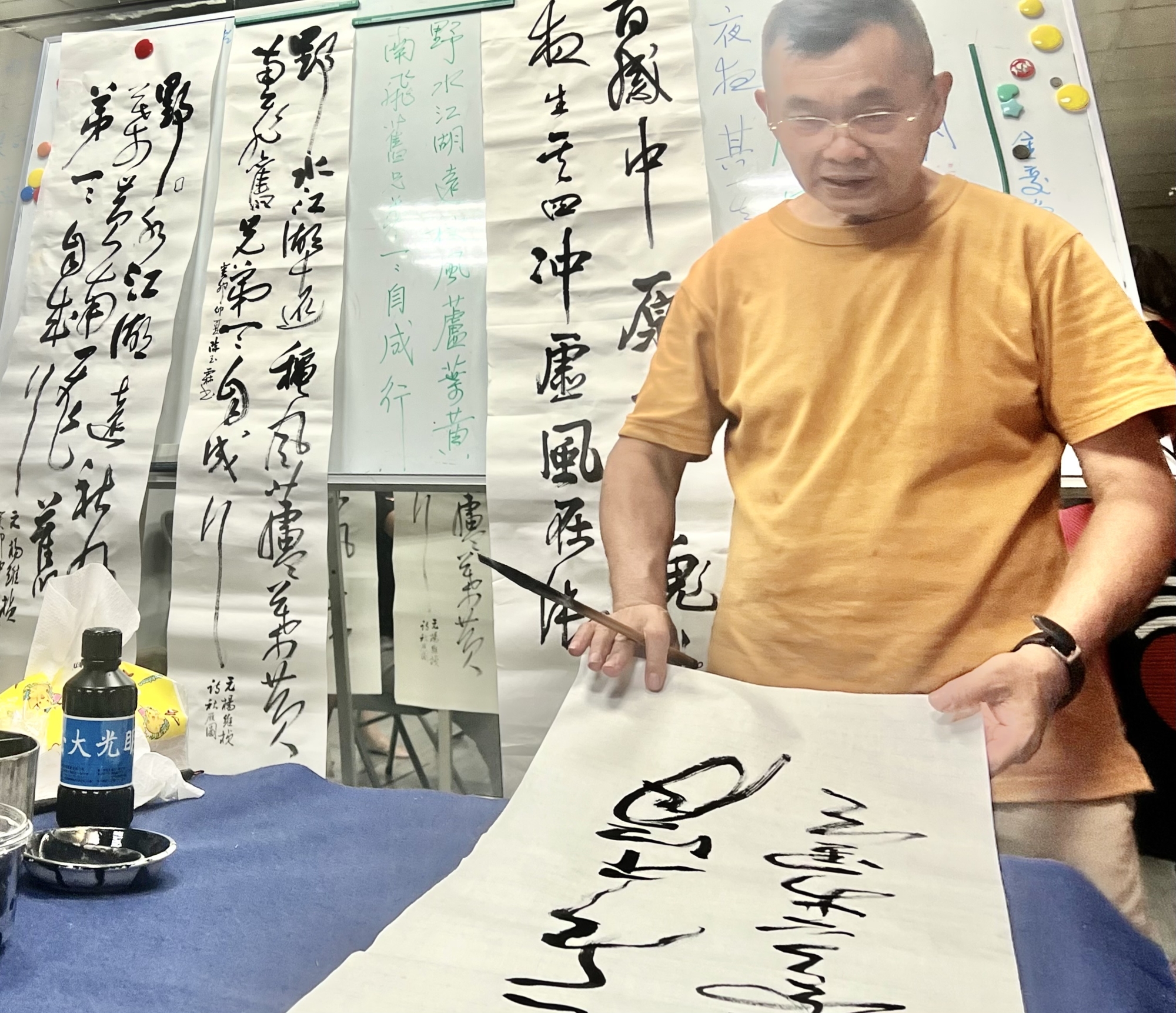 教學生從來不責難,幾乎都是鼓勵。他說,心情不好,學不出好東西,就和在寫比賽的書法創作一樣,情低落沒有辦法完成可以得獎的作品。