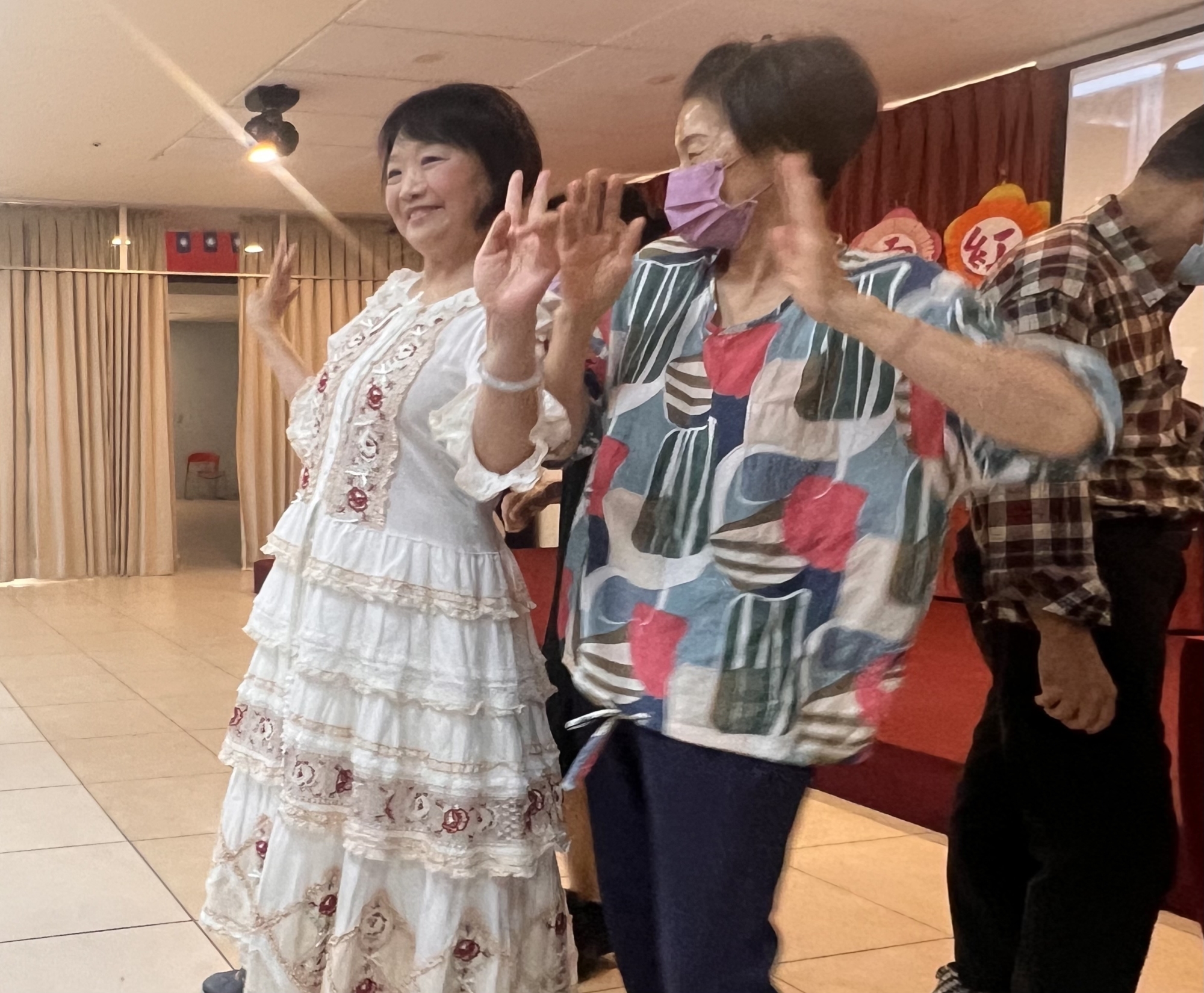 榮家主任白恩惠和副主任劉慶元全程參與同歡,對施雪紅的自創帶動唱平易近人,富有陽光親愛魅力,足以自娛娛人讚譽不絕。並且頒發感謝狀給施雪紅,感謝熱心服務,貢獻給長輩們愉快開懷。