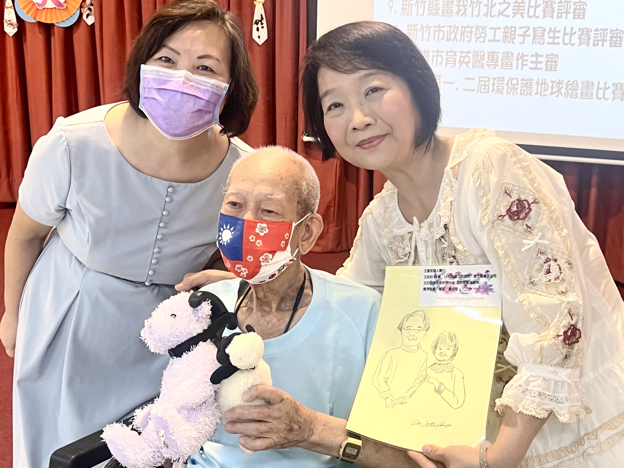 白恩惠(左)和藝術長輩王宜武(中) 畫畫給施雪紅(右)致謝 何高祿攝