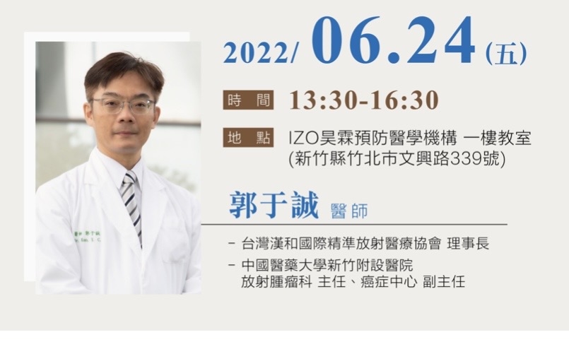 本次IZO昊霖預防醫學機構邀請到了癌症治療權威、台灣漢和國際精準放射醫療協會 理事長-郭于誠醫師!讓郭醫師提供一場專業解說癌症的講座,來讓參與講座的民眾面對癌症