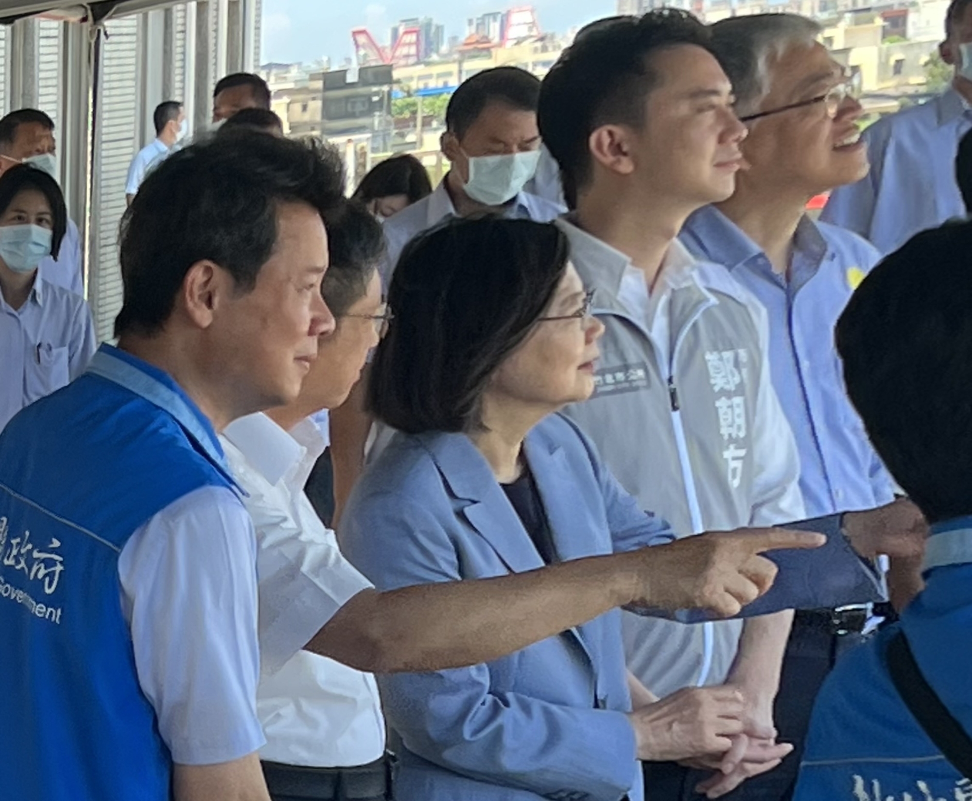 竹縣府工務處長江良淵(左)六月 陪縣長和總統視察 何高祿攝