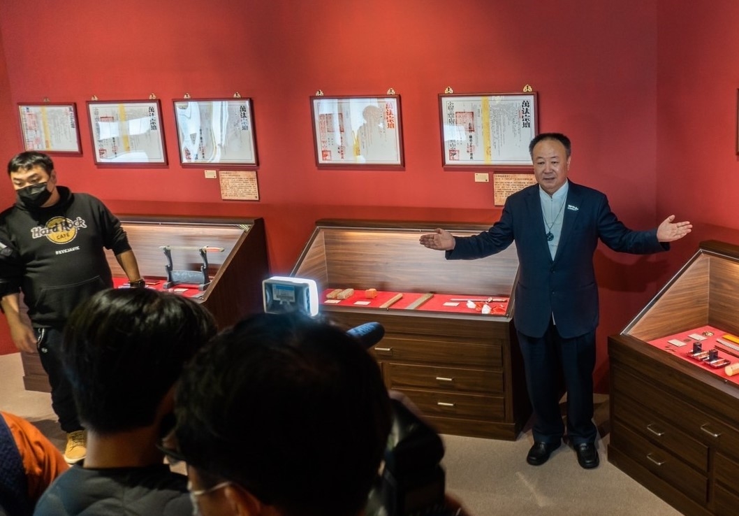 值得特別關注的是,展覽中展示的「法師入門、進階之陞職證照」,又名上奏天庭的「奏職疏文」。這些證照代表著道教的神秘世界,昭示並不是人人都能自由運用法器來應對「殭屍」。因為在道教的規定下,必須經過上報天庭並獲得批准,方可運用辰州符、法劍、引魂鑼、攝魂鈴等道具,來進行作法、招魂、祈福儀式,以解決各種不同的情況。這些平常只能耳聞或遠觀,難以近距離一窺其貌的物品,也都會在本次展覽中一次展出。