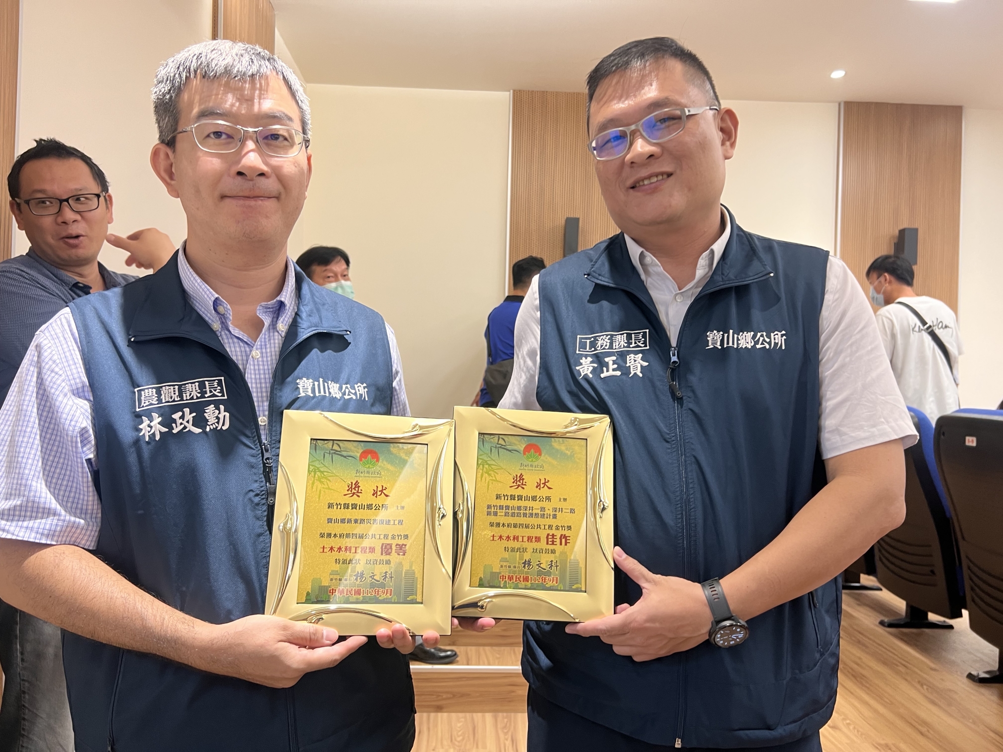 寶山農觀課長林政勳(左)和工務課長黃正賢(右) 代表領獎 何高祿攝