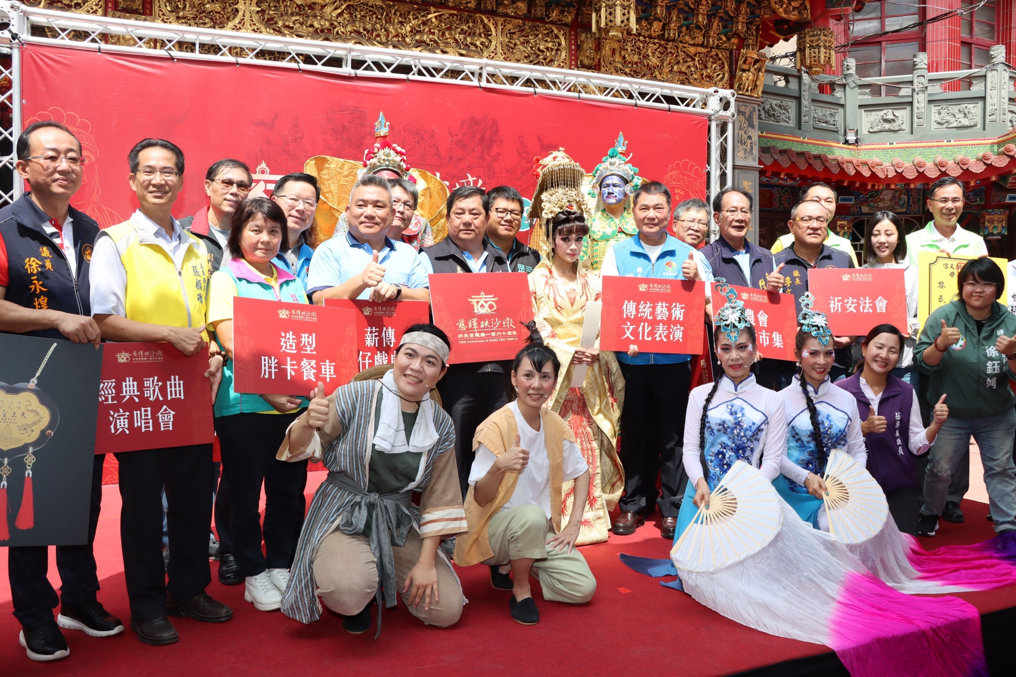 白沙屯拱天宮160周年慶活動以「慈暉映沙墩」為主題,今天上午在拱天宮廣場召開記者會,由主任委員洪文華說明活動內容,並與縣長鍾東錦、立委陳超明、文化部簡任研究員周秀姿、議長李文斌、縣議員張顧礫、周玉滿、翁杰、徐永煌、陳品安、通霄鎮長張可欣、台電中區施工處副處長許文明等人共同啟動這項系列活動。