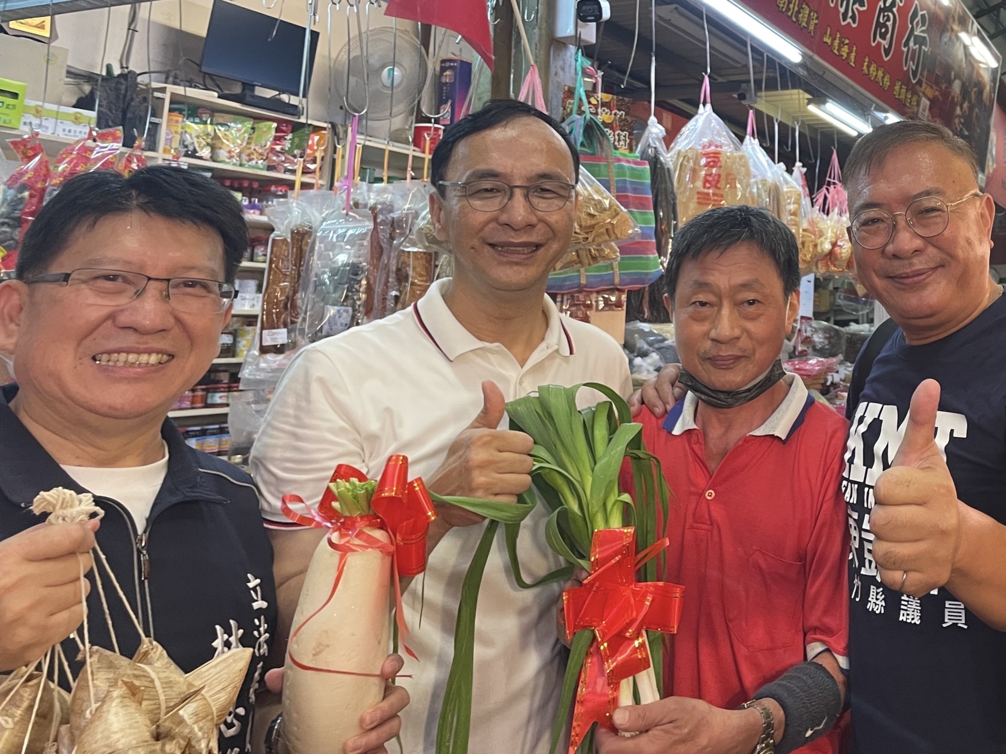 角逐連任國民黨新竹縣第二選區立委候選人林思銘,今天在黨主席朱立倫陪同下,在竹北市場展開首場市場掃街拜票活動,會場凍蒜聲響不斷。朱立倫及支持者盛讚林思銘是公民監督聯盟評鑑出來的優秀立委,更為家鄉爭取近70億元的建設經費,是真正有成績單可以給鄉親掛保證的唯一候選人。