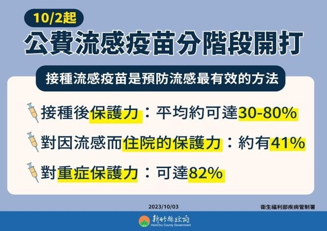 竹縣衛生局表示,自流感疫苗開打以來,民眾踴躍參與,所有的疫苗都是衛福部核可的疫苗,依照中央分配進行疫苗施打,請民眾放心並及早施打,以確保健康。