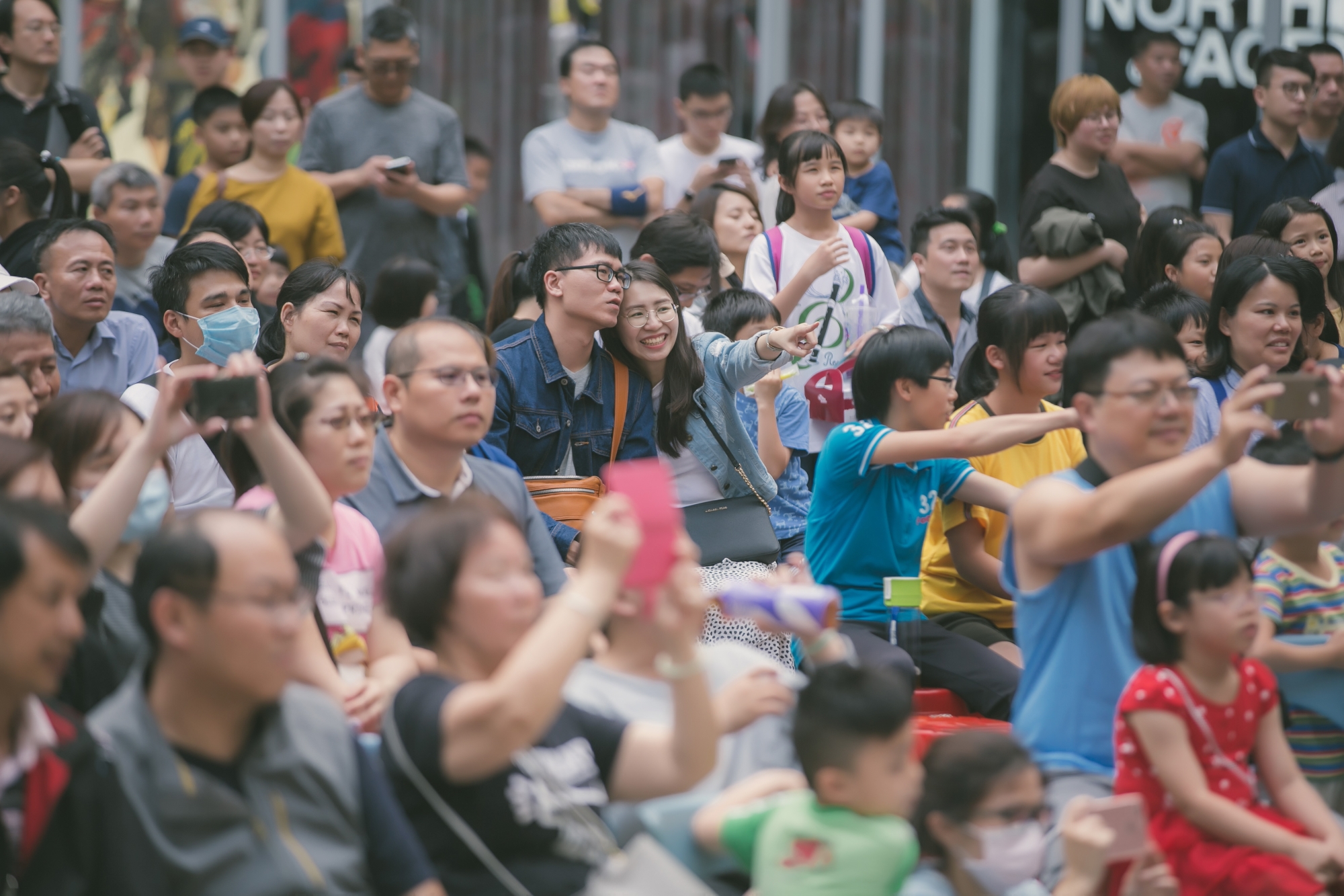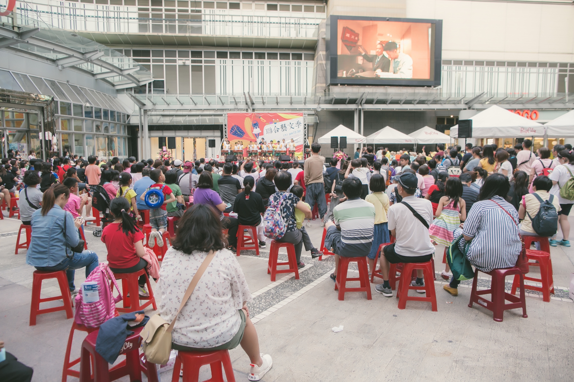 巨城中庭舞台廣場聚集大量人潮,觀賞聯合藝文季的表演 圖/ 何致遠