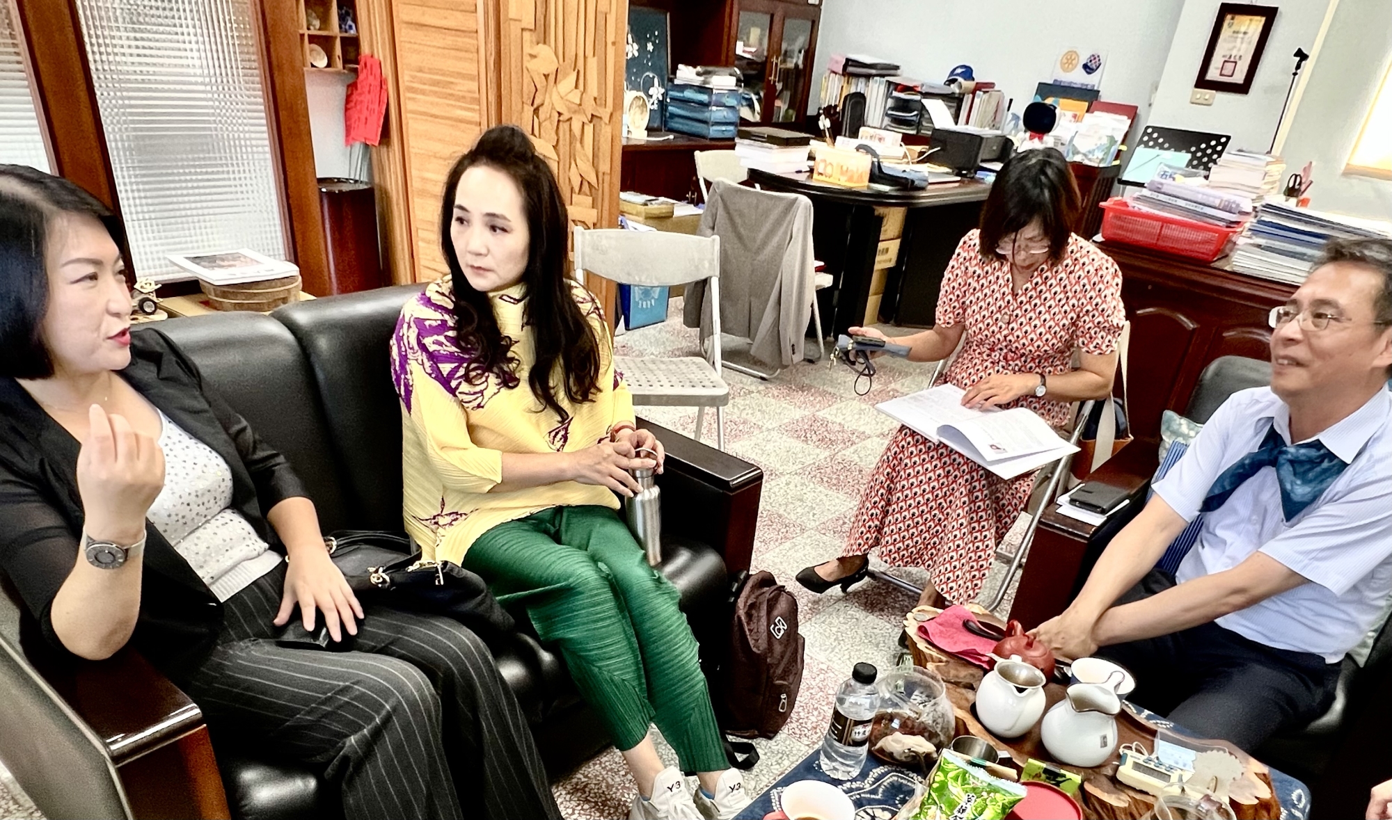徐繪珈(左)及彭碧鈴(左二)和廖志崑(右)謀啟蒙藝術發展 何高祿攝