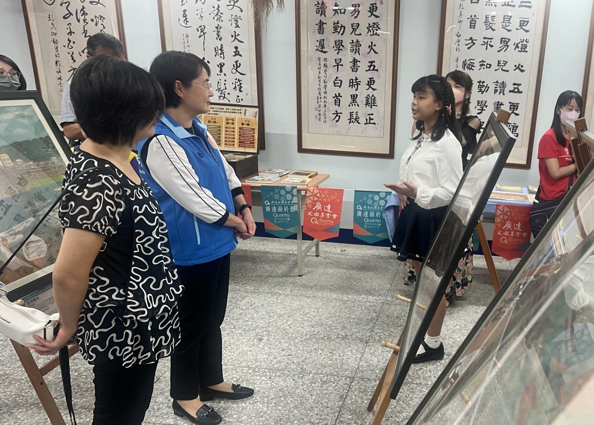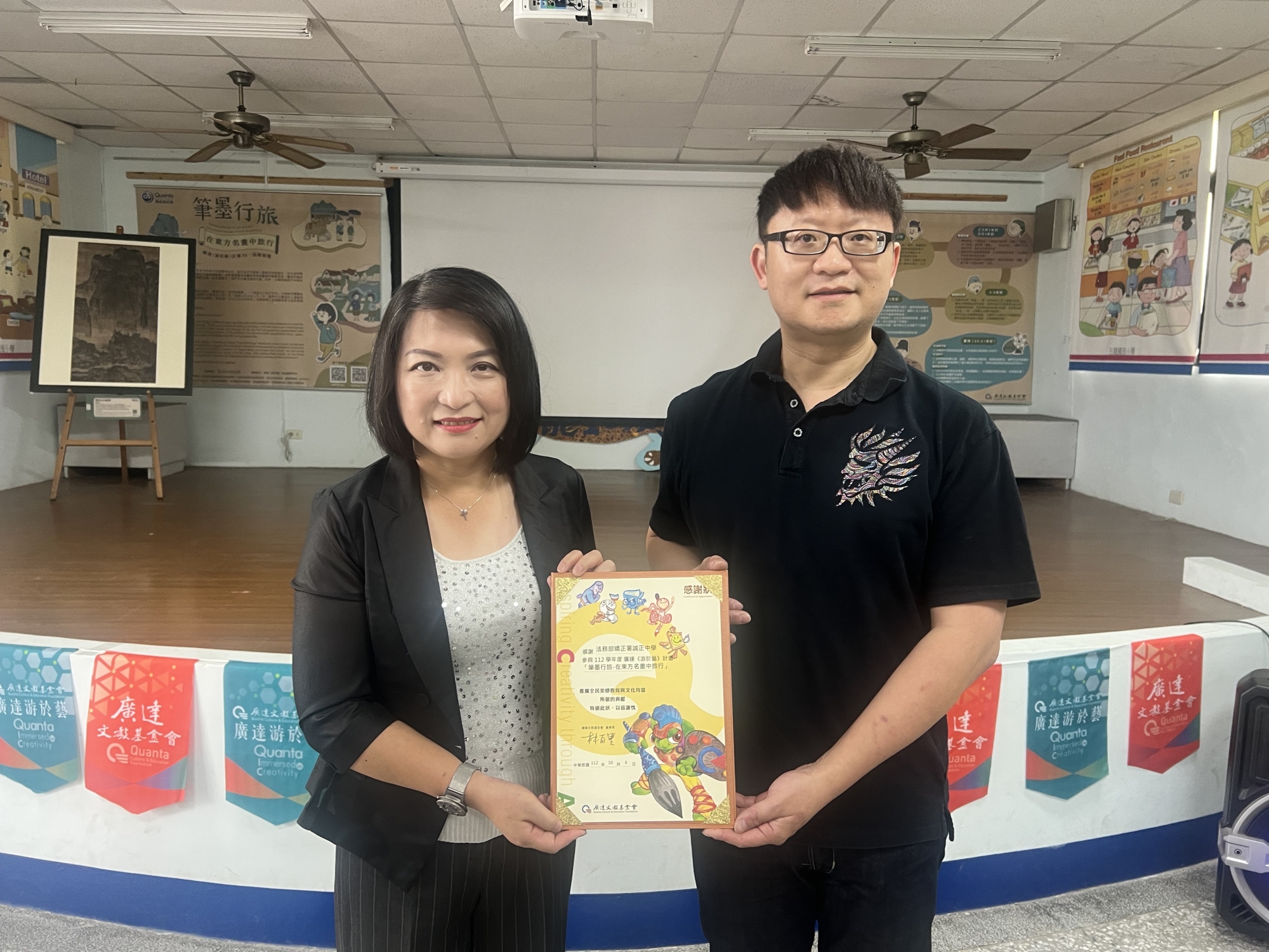 竹縣教育局局長楊郡慈表示,東方藝術一直以來都以其獨特的魅力和深厚的文化底蘊吸引著人們,透過本次展覽,我們可以用旅行的角度,穿越時空,以東方名畫欣賞到藝術家筆墨描繪出的山水風景,這不僅僅是一場視覺的盛宴,更是一場心靈的饗宴。感謝各校協助策展,期待同學們能開啟新的觀點與新的視野,並將其應用於生活當中;而藝術更是科學的最高形式,感謝廣達文教基會長期為教育界付出,讓孩童能實際參與和體會藝術之美。