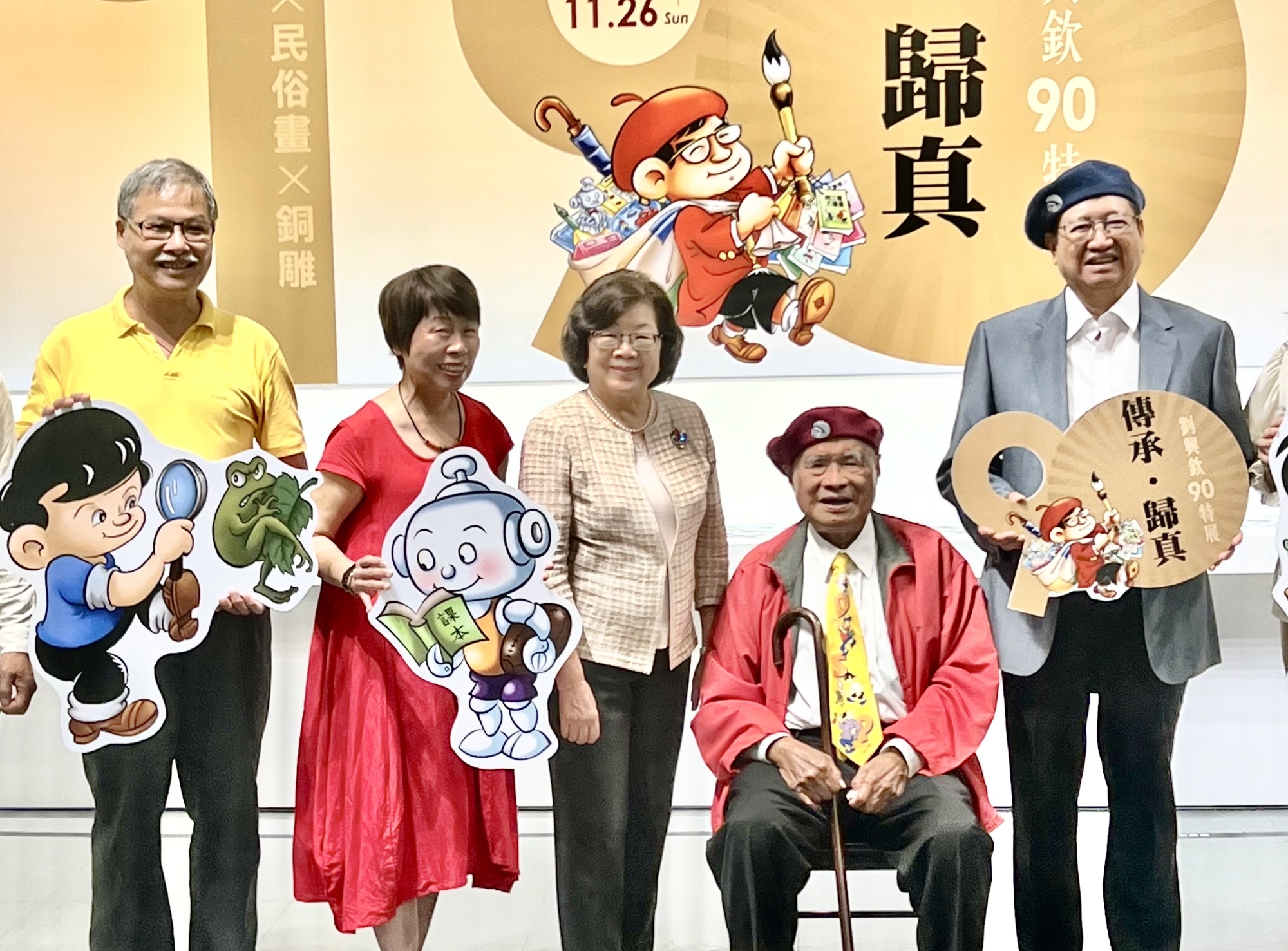 劉興欽90特展,今20日舉辦宣傳記者會,縣長楊文科與國寶漫畫大師劉興欽親自邀請民眾前往觀展,展覽與新竹縣文化基金會共同辦理,除展覽外還規劃活動「機器人綺幻冒險—DIY壓克力彩繪」與「寶袋『藝』想世界—DIY版畫絹印」,並推出「劉興欽貝雷帽」、「機器人漁夫帽」兩款多色的文創商品,邀請鄉親朋友前往觀展,一同感染老頑童劉興欽透過創作,孜孜不倦地為台灣這塊土地貢獻的心意。