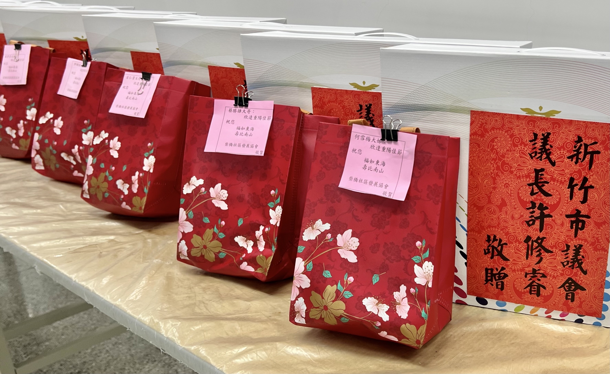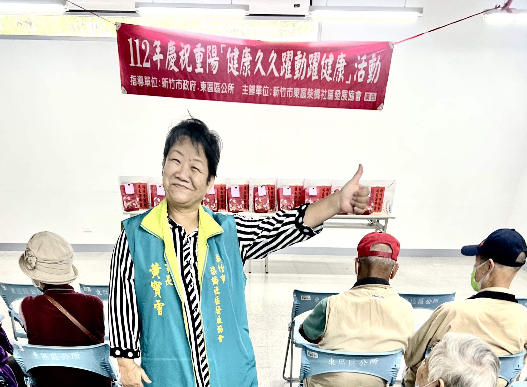 竹市青草湖風景區鄰居柴橋社區發展協會,提前過九九重陽節,二十一日於新建柴橋活動中心熱鬧慶祝重陽節日,社區居民在柴橋社區活動中心相見歡。