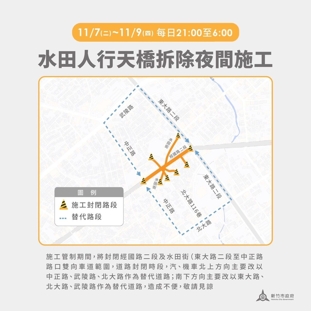 竹市水田天橋拆除夜間施工交管公告 何高祿編製
