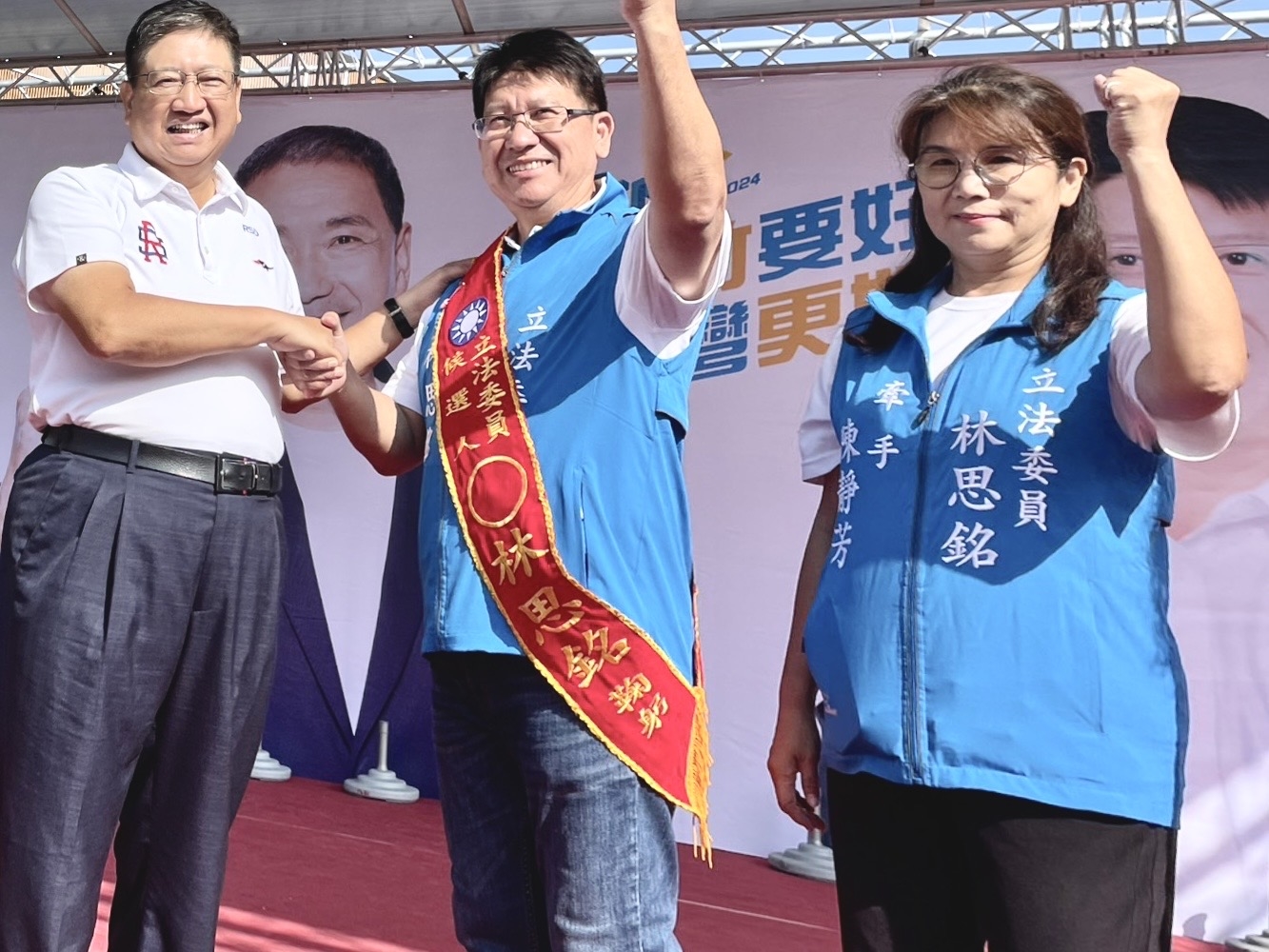 立委林思銘、總統候選人侯友宜竹東聯合競選總部成立大會,今天上午盛大登場,吸引超過6000人與會相挺。縣長楊文科、竹東鎮長郭遠彰等人站台助選時一致肯定林思銘是一名會做事的優質立委,過去三年多就為大竹東地區爭取24億建設經費,請大家繼續支持這位賣力為台灣、為新竹家鄉做事的人。