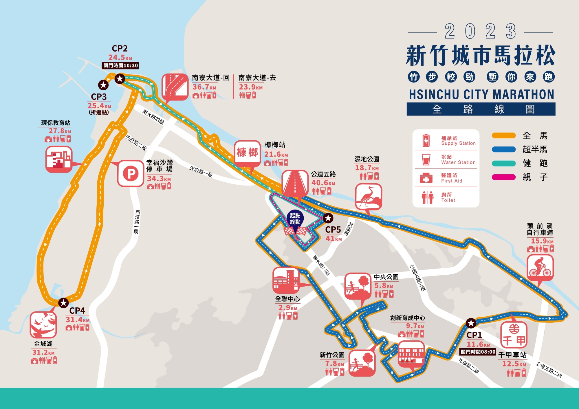 2023新竹城市馬拉松將於11月19日上午6時在樹林頭公園起跑,此次共有「42K全馬組」、「22K超半馬組」、「11K健康樂跑組與高級中學競賽組」、「3.5K親子休閒組與中小學競賽組」以及今年首度規劃的「超半馬團體賽」,為維持活動進行圓滿順暢,當日上午市區部分道路將分路段、分時段進行交通路線管制,力求降低交通影響,籲請用路人注意相關管制資訊、提前改道,確保用路權益。