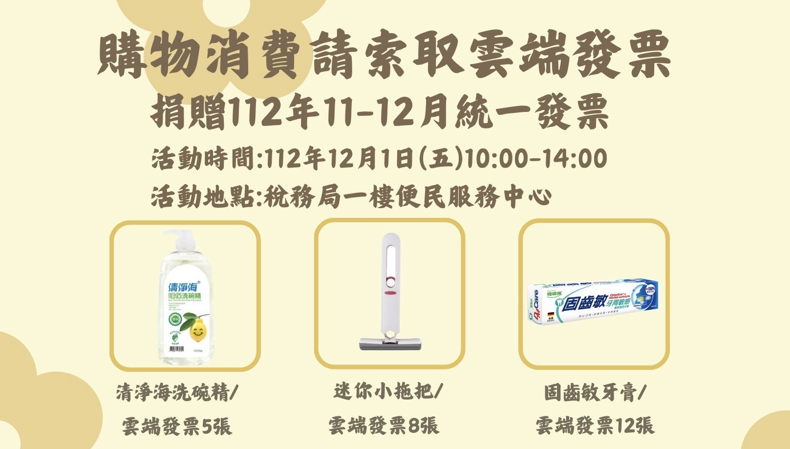 捐贈11-12月份雲端發票5張或紙本發票10張可兌換月曆1本、捐贈雲端發票2張或紙本發票3張可兌換農民曆1本,數量有限兌完為止。
