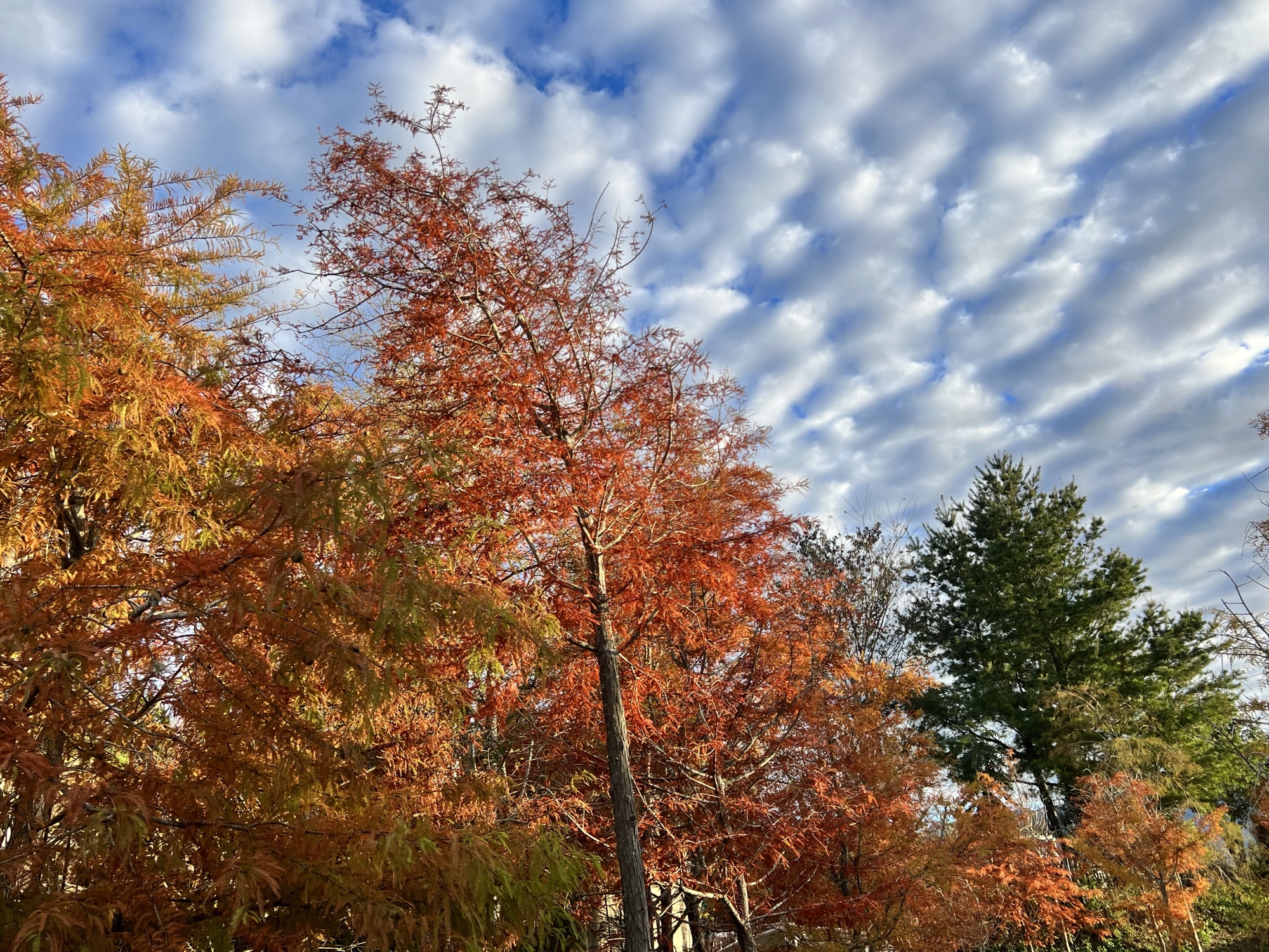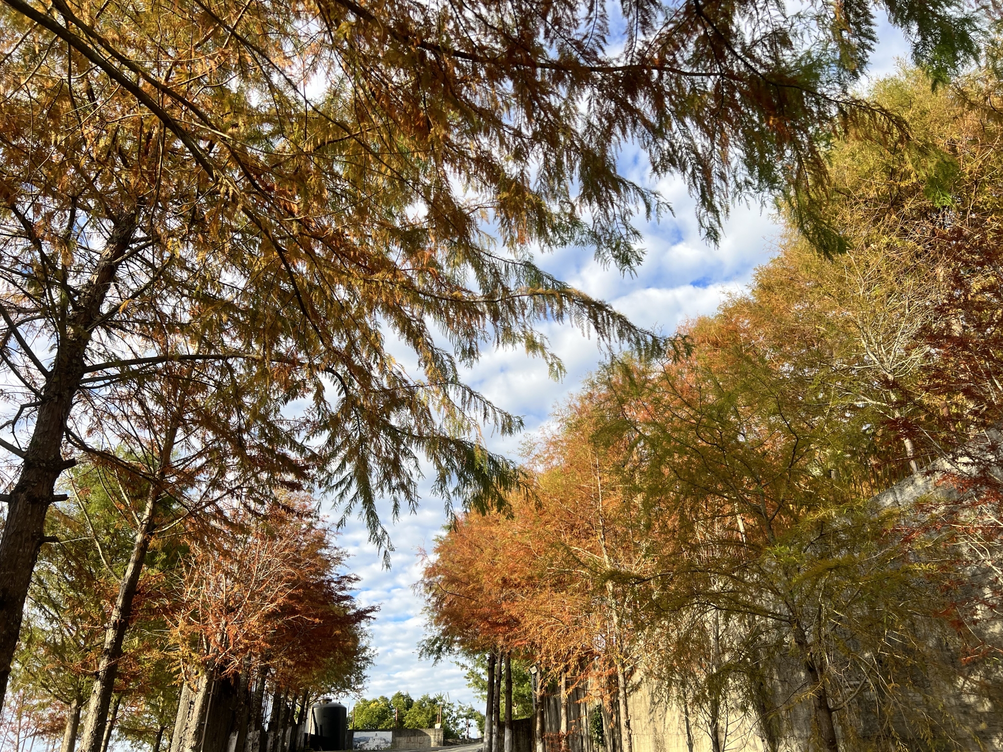 一步一景,前進後退各有不同風情,或高、或低儀態萬千,加上藍天白雲襯托,更突顯此處落羽松秘境特色,散發出與眾不同宜人姿色。