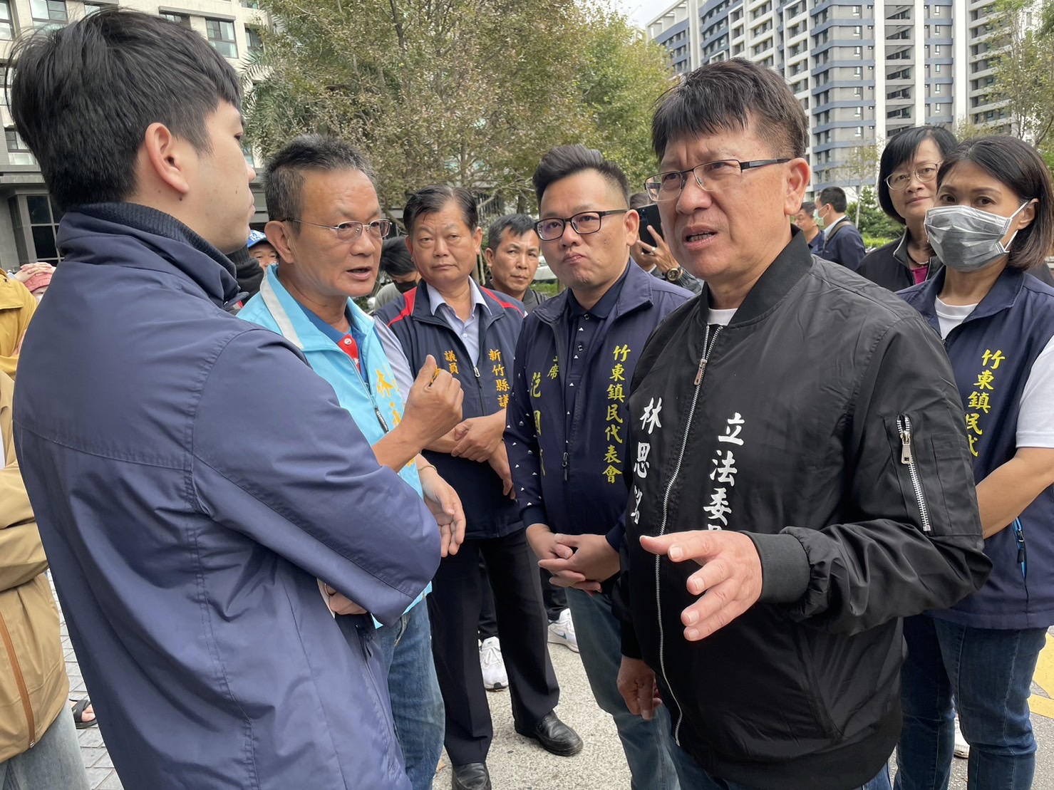竹縣竹東鎮二重埔環球、寰宇、星都心等三大社區住戶,不滿光明路拓寬工程設計嚴重不當,造成居民行車險象環生,日前群聚拉白布條抗爭。在地立委林思銘今天緊集安排補助經費的國土管理署派員實地會勘。中央官員當場承諾,工程若因居民需求需辦理變更設計,絕不影響補助經費。