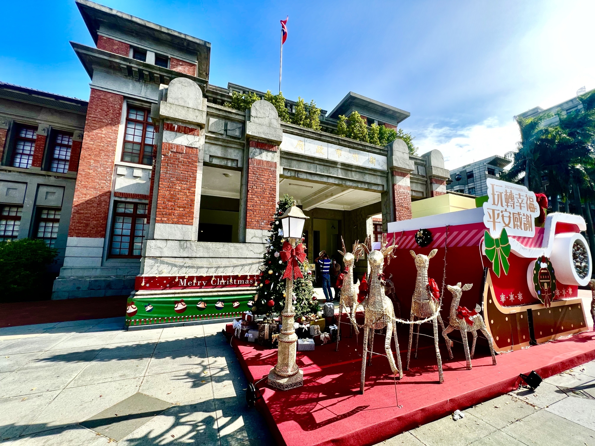 竹市府前喜氣藝術,迎接耶誕節和跨年氣氛濃厚 何高祿攝
