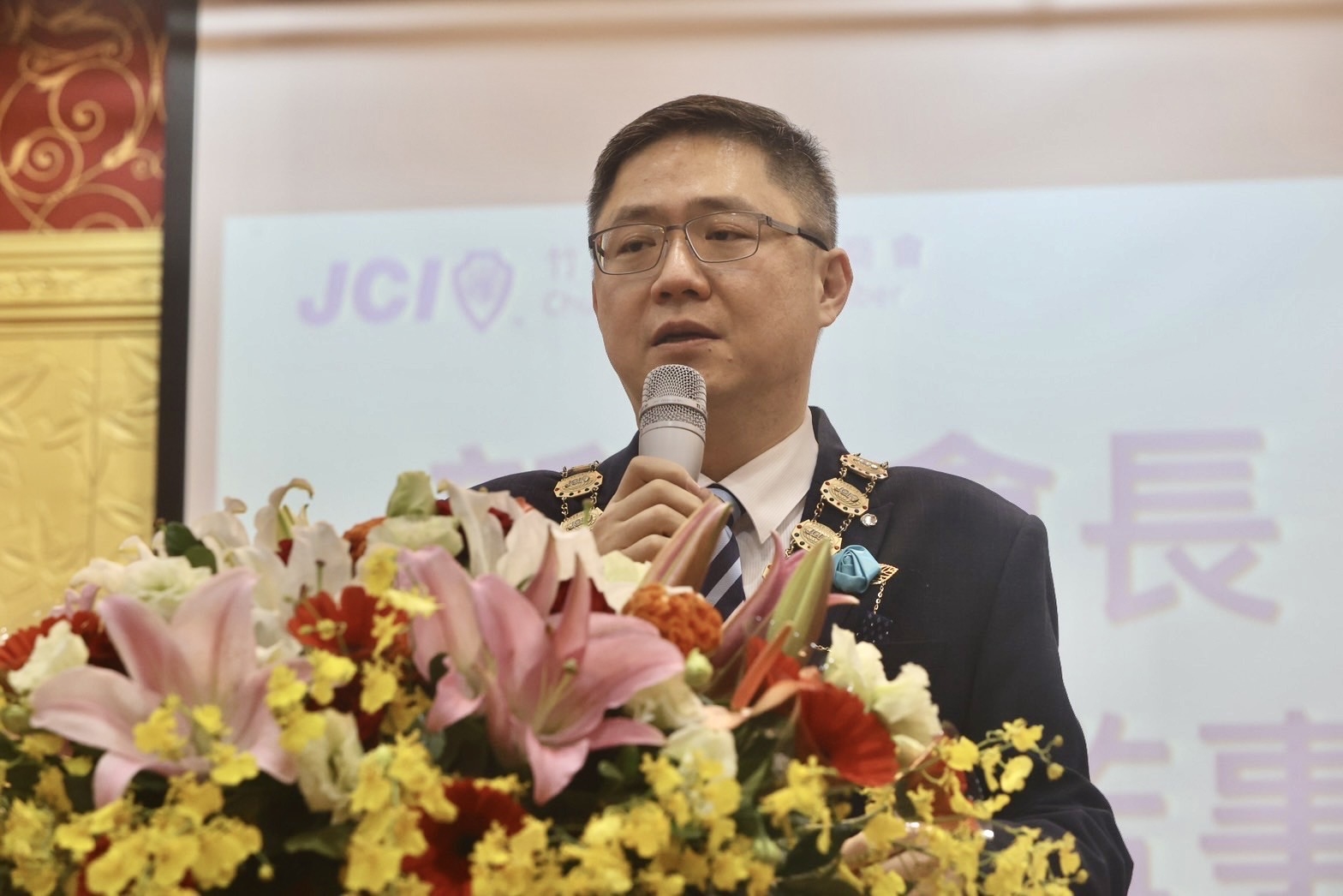 鄭朝鐘會中感謝說,很榮幸接任竹東國際青年商會第50屆會長!從1975年陳政宏前會長創會至今走過49個年頭,明年要邁向50周年紀念,非常感謝各位前會長、OB前輩們帶領了竹東青商一步一步的發展到今天,真的很不容易!
