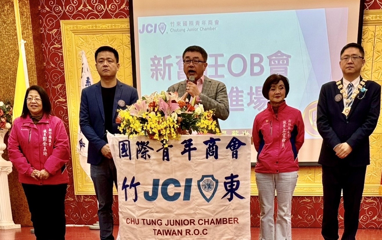 邁入半個世紀的竹東國際青年商會長鄭朝鐘就任,賀客盈門喜氣洋洋,議長張鎮榮特別贈送禮物致賀,副議長王炳漢親臨登台致詞鼓勵,縣長楊文科指派社會處陳處長陳小怡致賀詞。