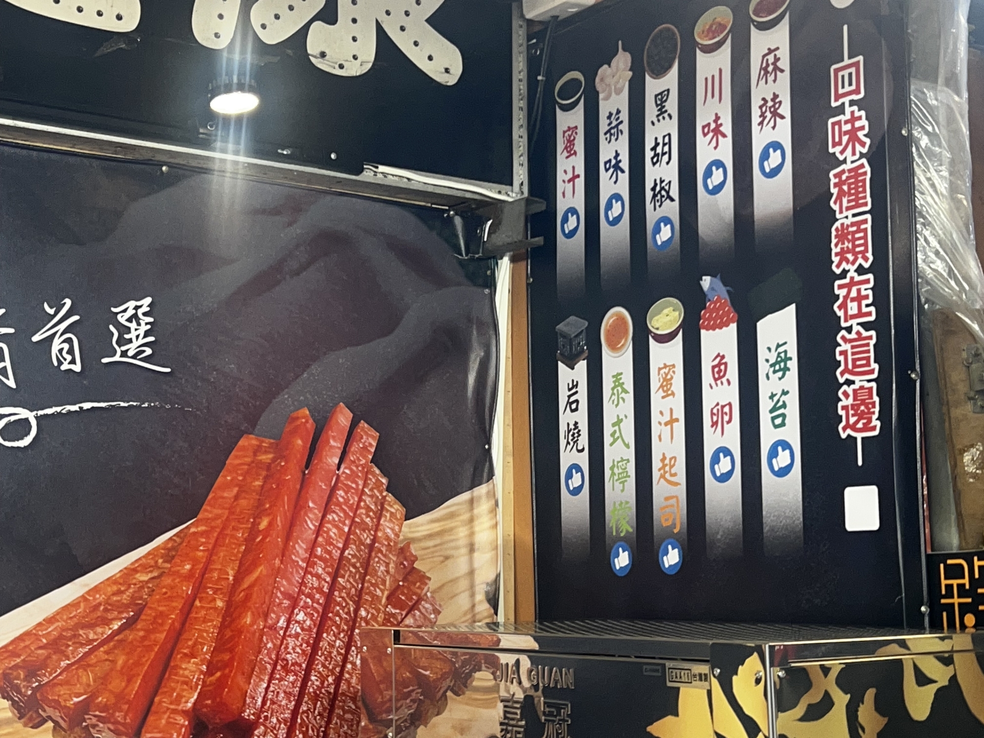 總共研發出共十種口味超厚多汁豬肉乾,包括蜜汁、蒜味、海苔、黑胡椒、川辣、麻辣、蜜汁起司、魚卵、泰式檸檬、岩燒。有現場燒烤趁熱享受美味及一大口單一真空即食伴手禮包裝,兩種不同消費類型。