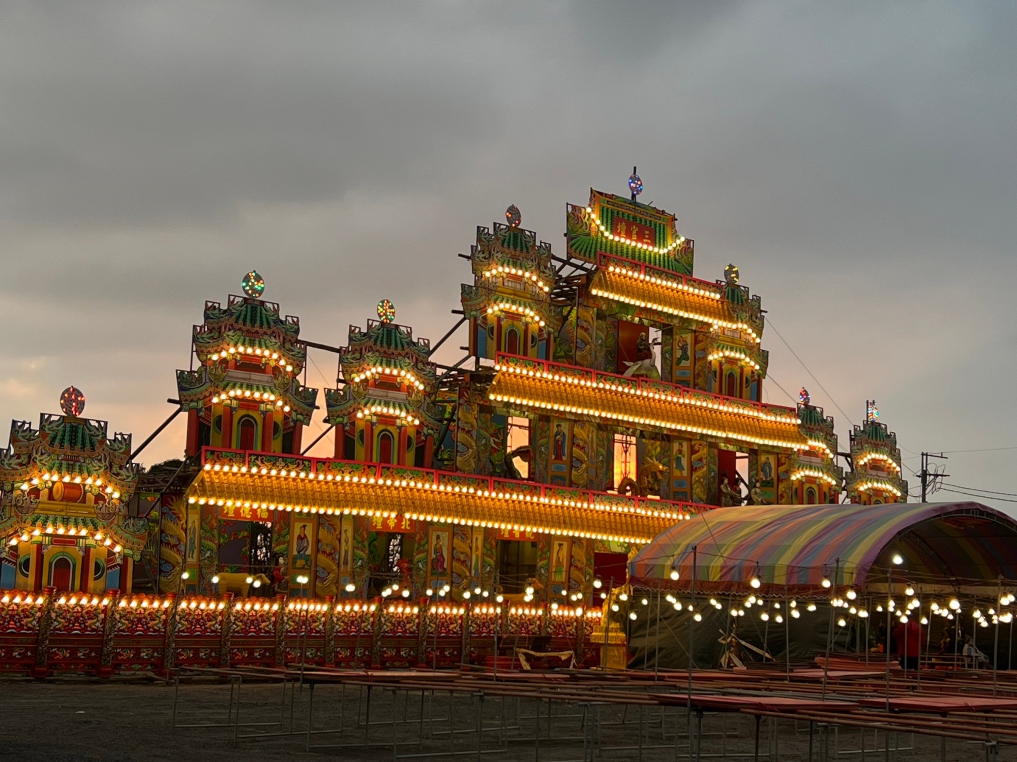 今晚五朝建醮大典慶成祈安熱鬧放水燈和蓮花燈遊行,把百歲廟會慶典引入亮麗高潮。
