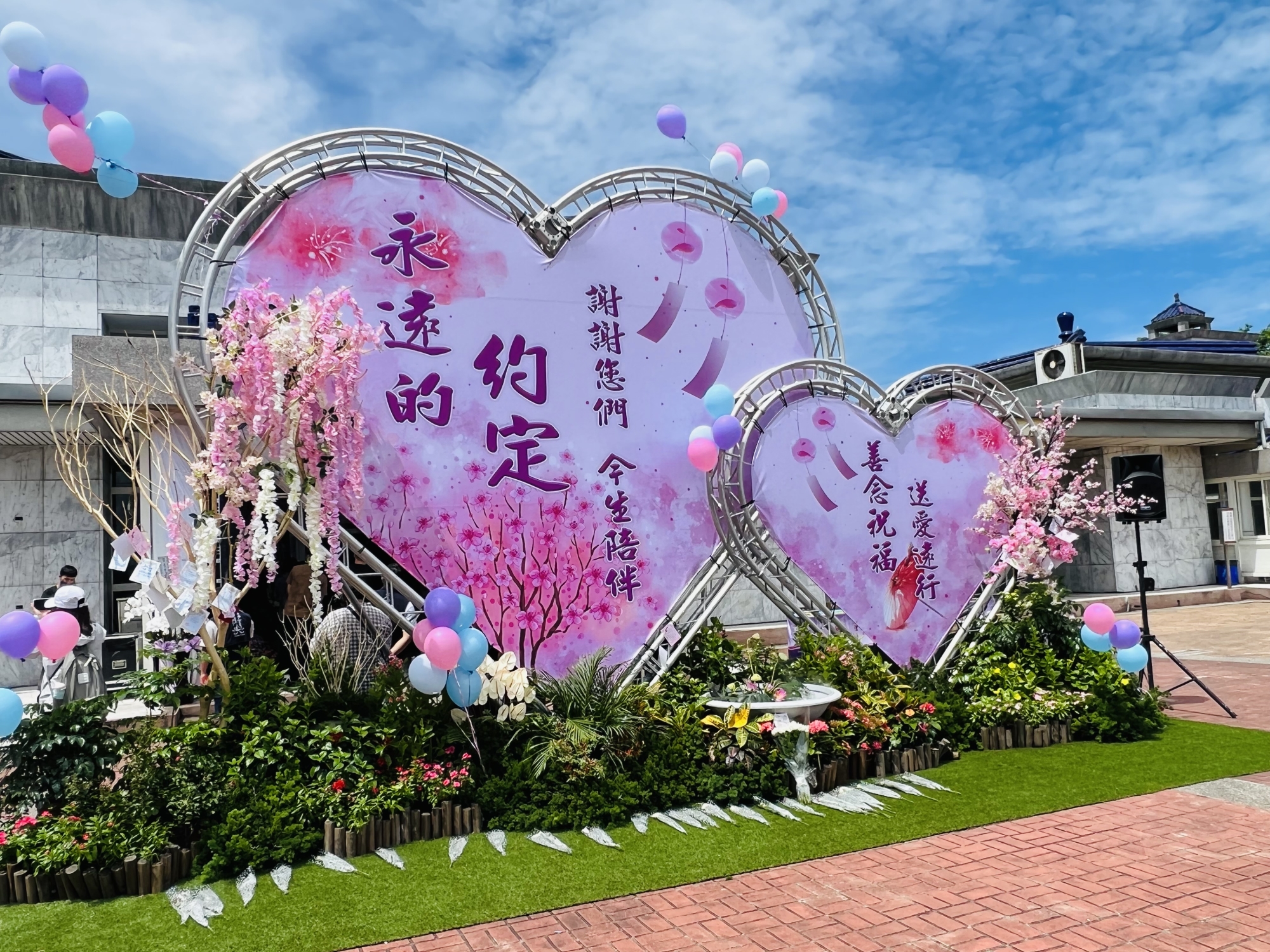 告別式門口兩個愛心,永遠的約定謝謝您們今生陪伴 何高祿攝
