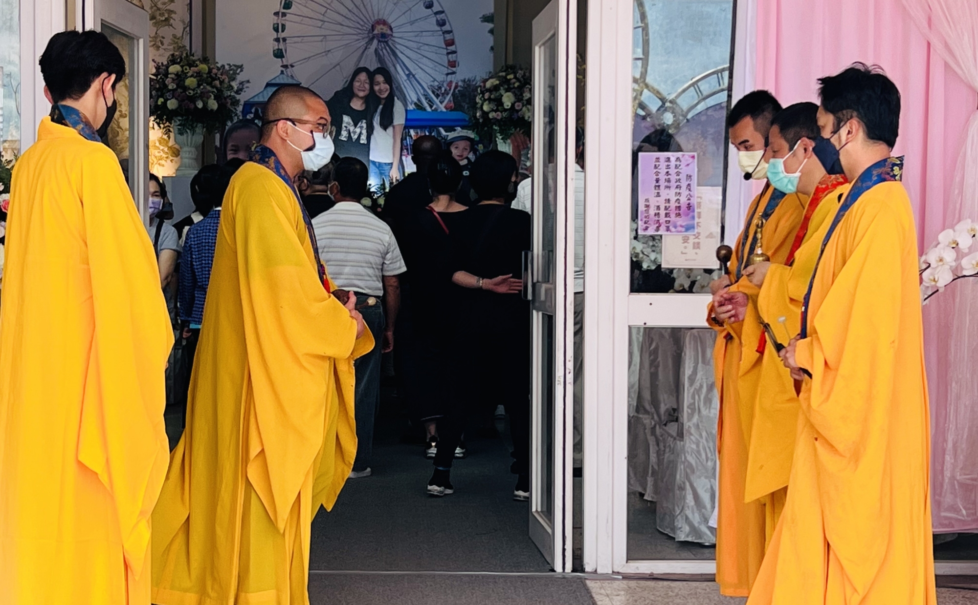 各方大量擁至關切慈善團體和愛心人士,濃厚的社會溫情,促使告別式場內外一度水洩不通。告別式內外佈置以粉紅和白色兩色交融,門口兩個大愛心造形和靈堂內各種不同神情亡者立牌,內外相互呼應,哀傷中帶著活潑快樂氣氛,送行者倍感依依。
