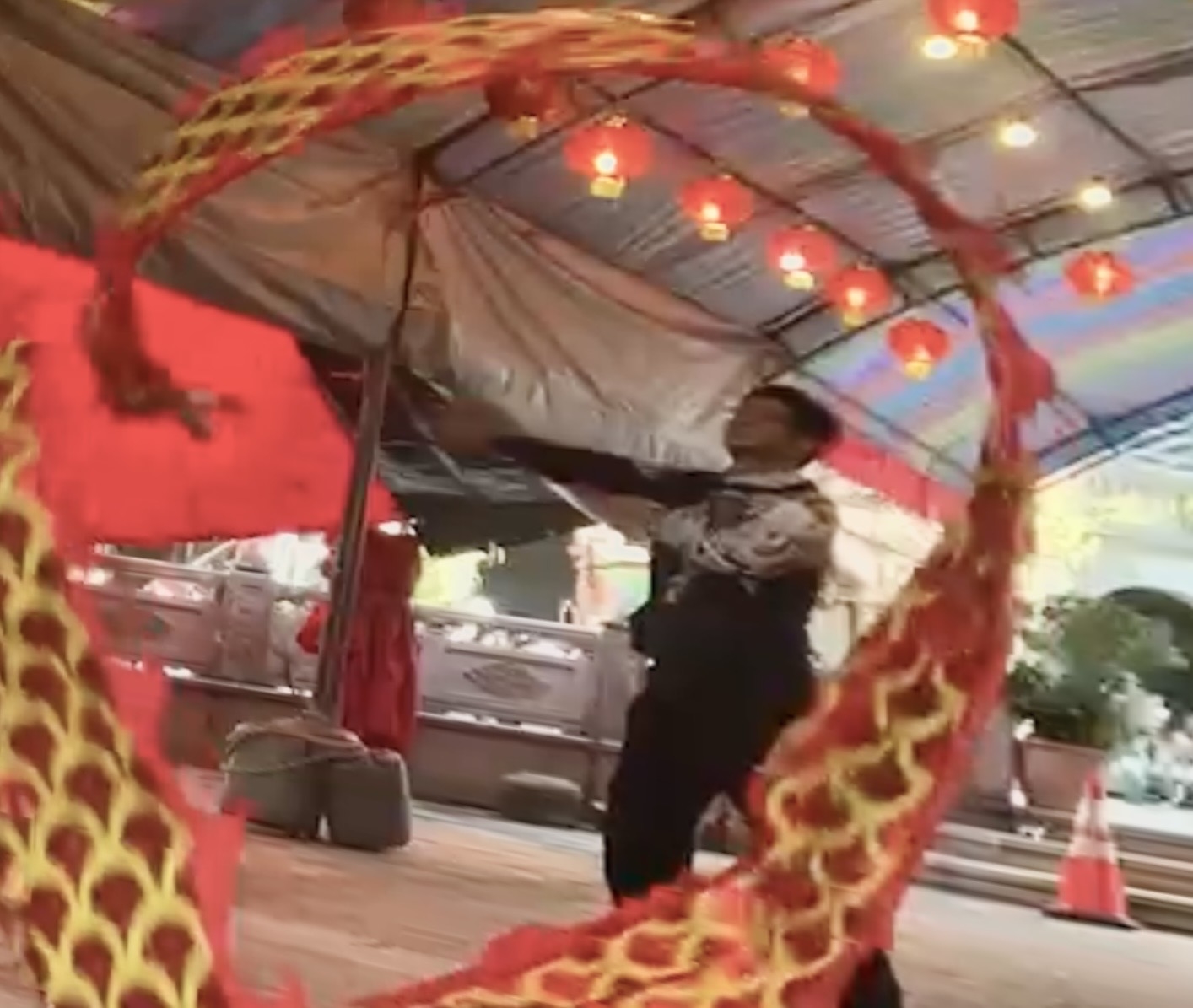 補運廟會龍燈點睛儀式中,安排飛龍扭轉乾坤三龍戲水迎好運戲碼,由藝術家蔡栢松、陳謂熊和陳家良三人,分別以紅、青和金三種顏色彩帶龍揮舞表演,今天十八日下午,三種顏色彩帶龍,在長和宮廟前廣場彩排表演,結合中國古典和現代街舞以身轉帶、以帶轉身,動律線條婀娜多姿,舞出意象中飛龍最飄然的意境,吸引過客駐足觀賞比贊肯定。