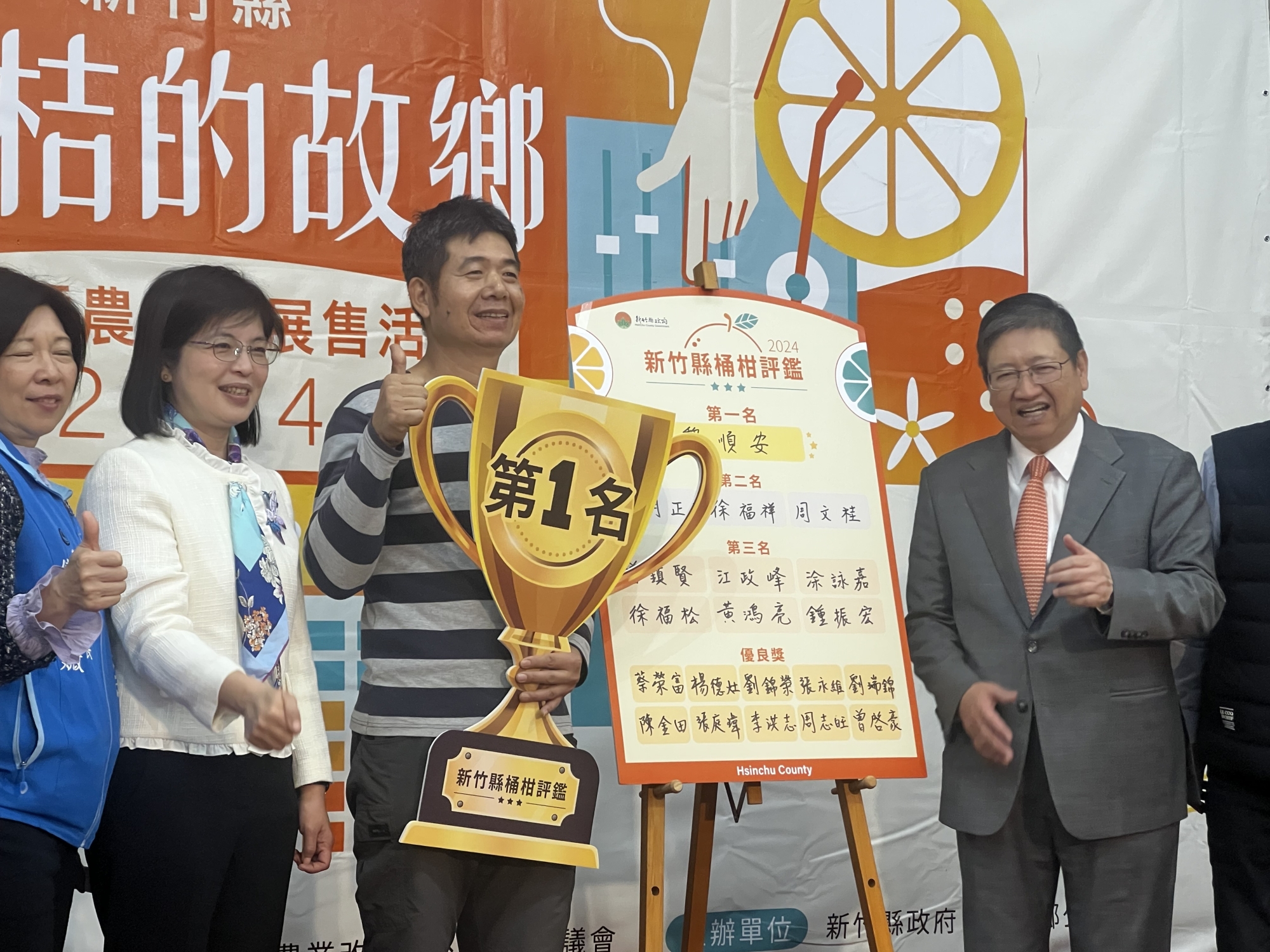 為推廣新竹縣桶柑農特產品,由峨眉鄉公所及峨眉鄉農會主辦、新竹縣政府補助的「2024年新竹縣桶柑評鑑暨新竹縣柑桔的故鄉記者會」,於今日(1月31日)新竹縣政府大廳舉辦,新竹縣長楊文科表示,峨眉是他的故鄉,生產的桶柑水分多、甜度高,是年節最佳伴手禮,「送禮、自用兩相宜」,歡迎大家2月3日及4日到府前廣場採購。