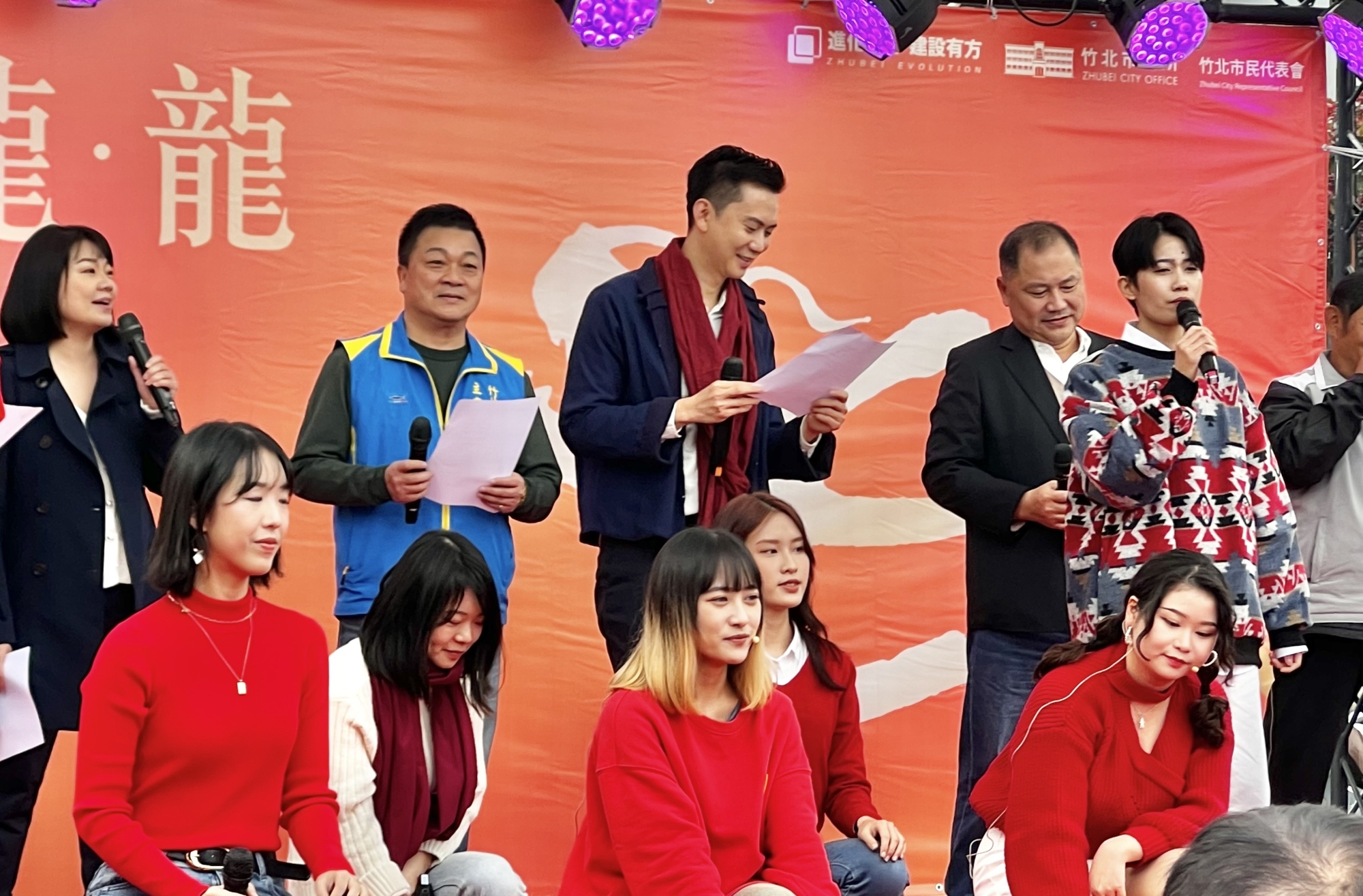 竹北市「2024竹北樂龍龍年貨大街」今天熱鬧開幕,應景主題曲-Love Long Long樂龍龍也搶在今天首度曝光,由竹北市長鄭朝方領唱並以快閃形式讓現場民眾驚喜萬分。