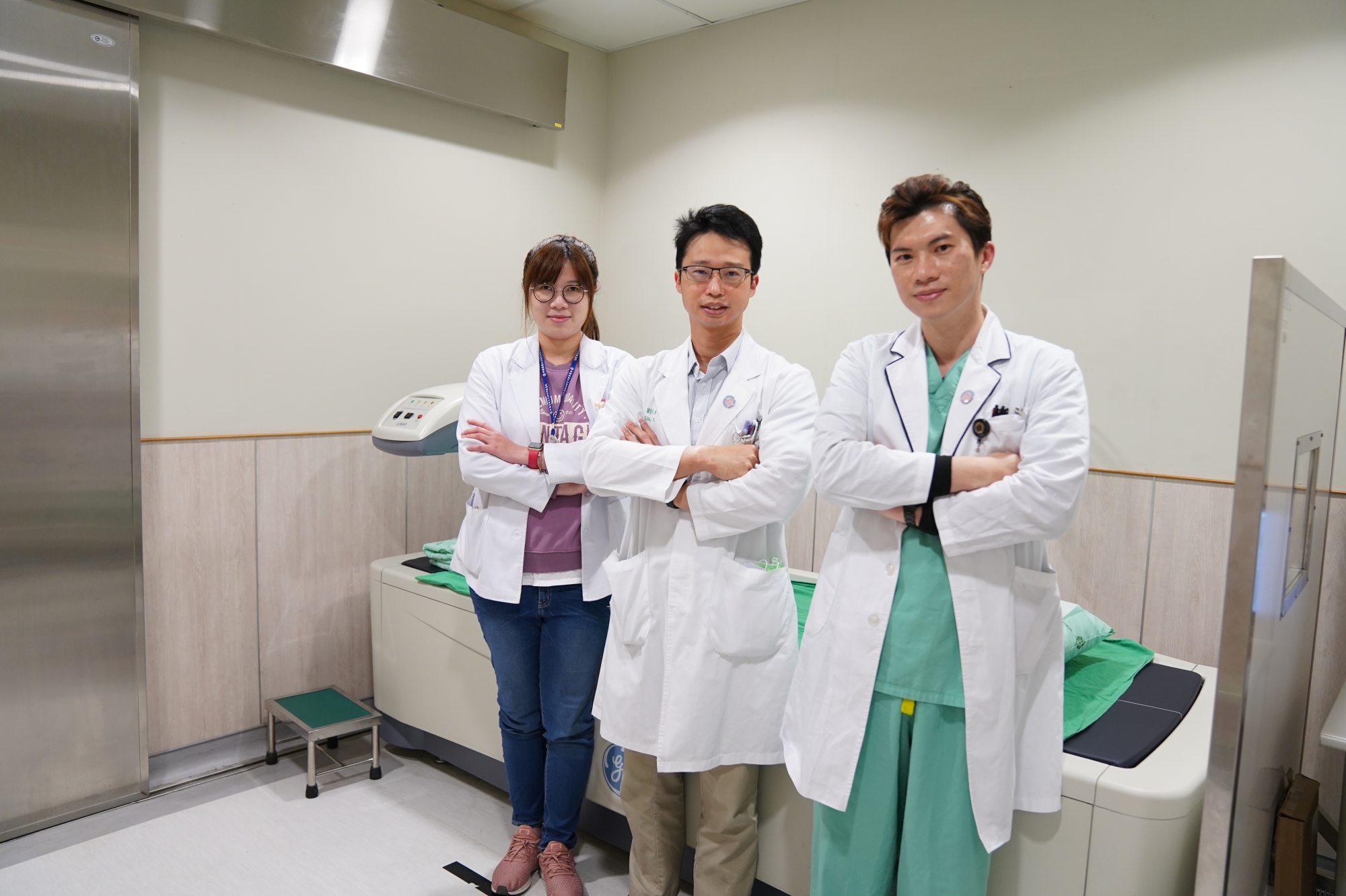 右起醫學影像科總技師周思賢、骨科醫師劉俊良、骨科個管師呂詩函 圖∕中大學新竹醫院