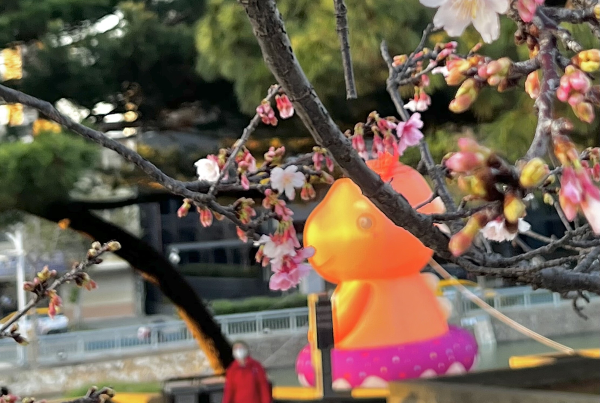 新竹公園有河津櫻、富士櫻、八重櫻、山櫻花等共約860株櫻花樹,目前花況已開近七成,估計接續不同品種的櫻花,繼續綻放到3月中,民眾把握假期賞櫻。