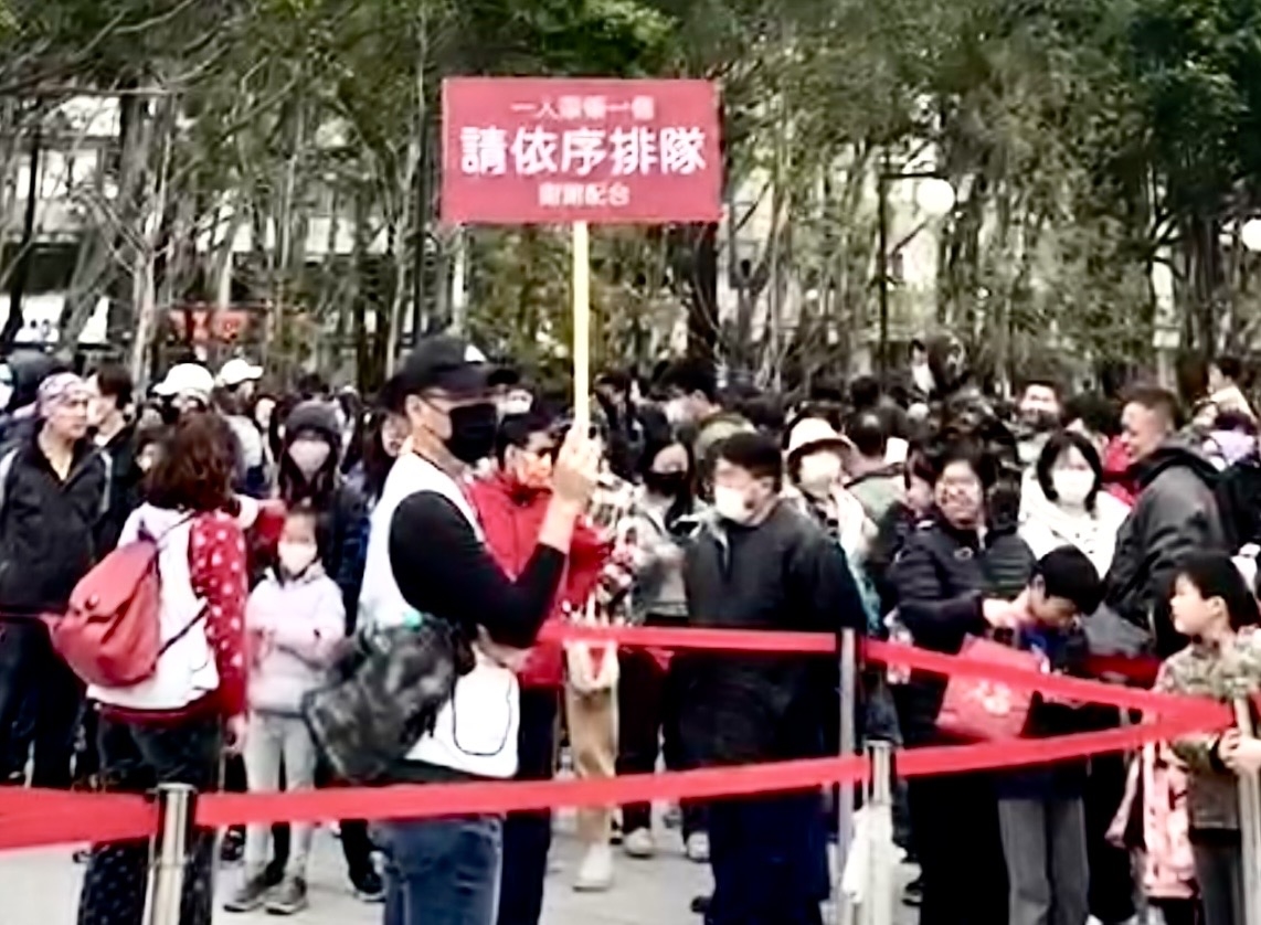 孔廟前春節不易出現,難得人潮和大排長龍景象,今天下午16時起小提燈發放開交熱鬧加溫。