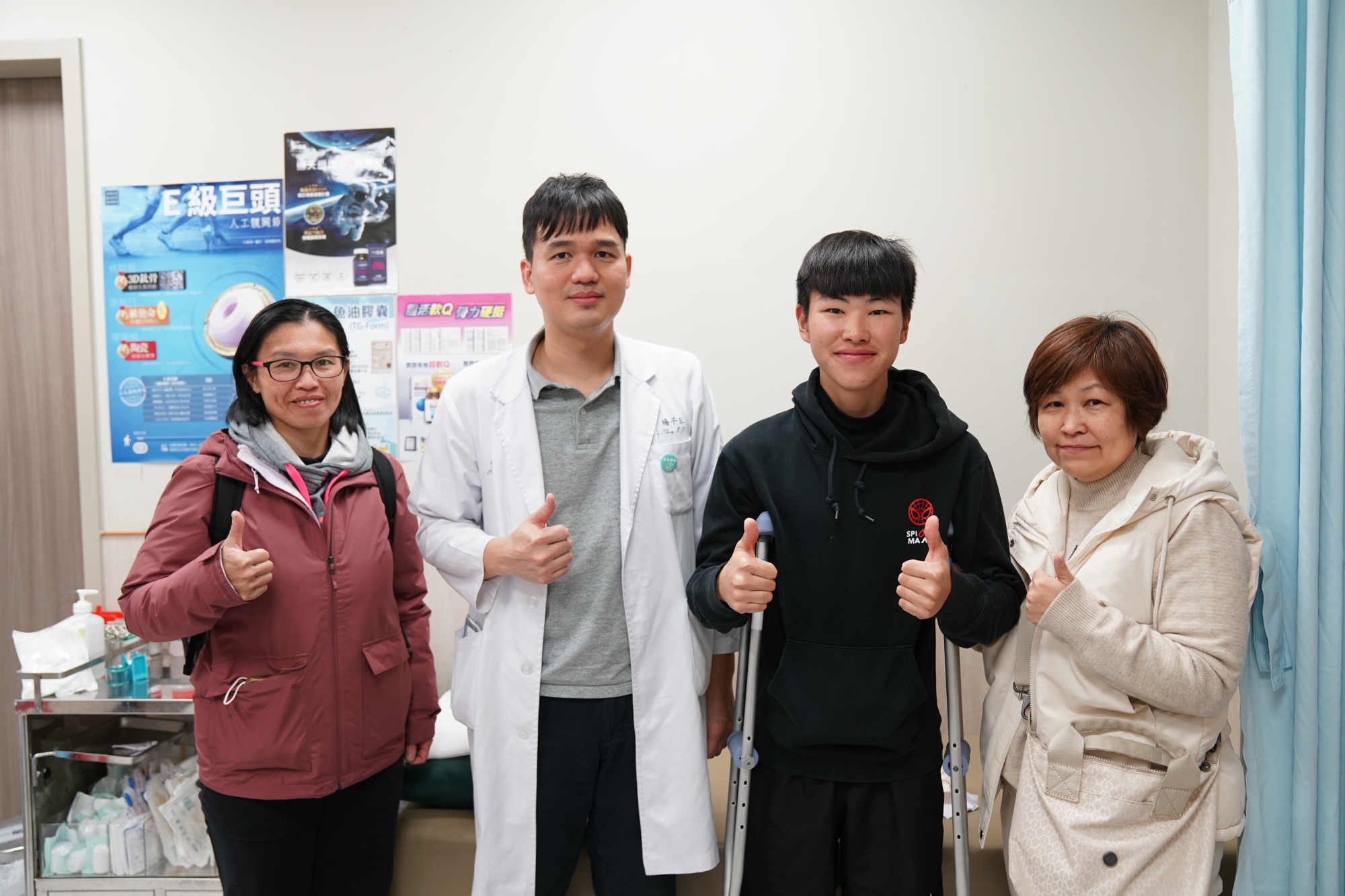 左一為教練方芬芳。左二骨科醫師楊子正。右二萬大中運動員。右一萬大中母親。 圖∕中醫大學新竹醫院