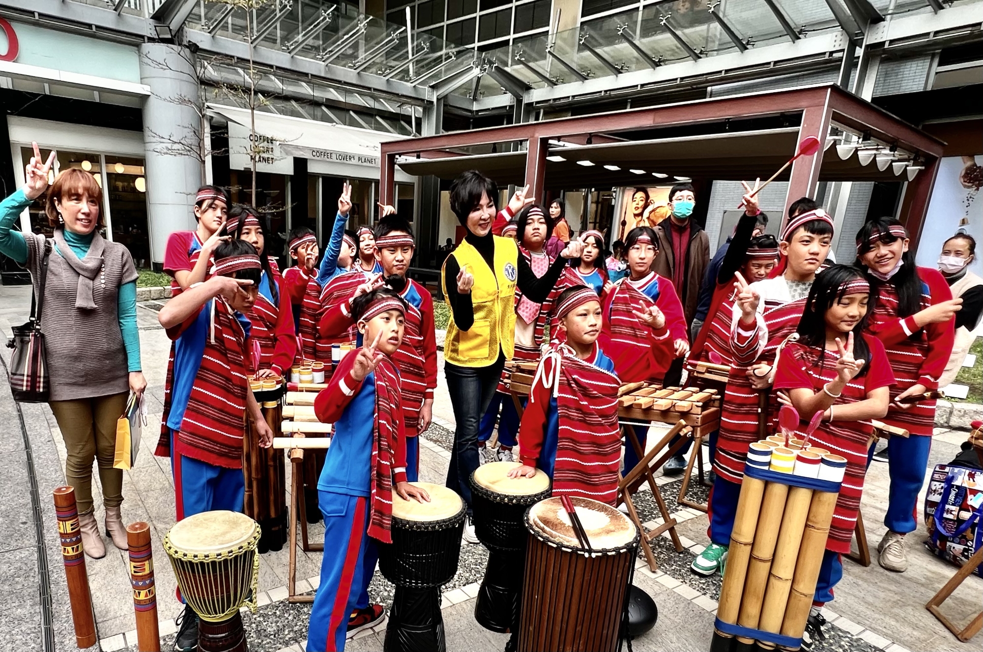 梅花國小校長葉惠雯及主任(左)帶領原民同學表演傳統文化 何高祿攝