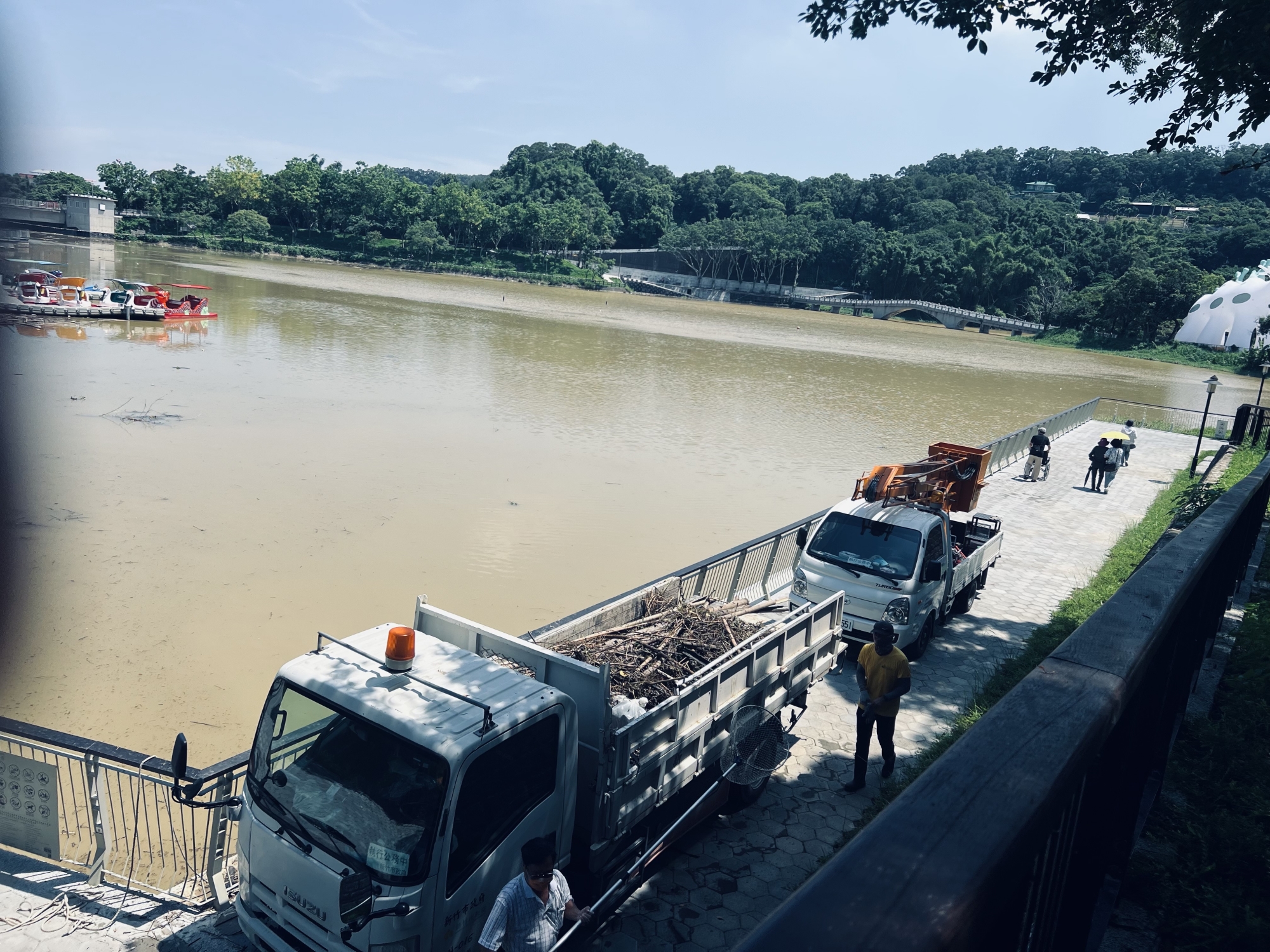 湖面垃圾災情緊急清理搶救 何高祿攝