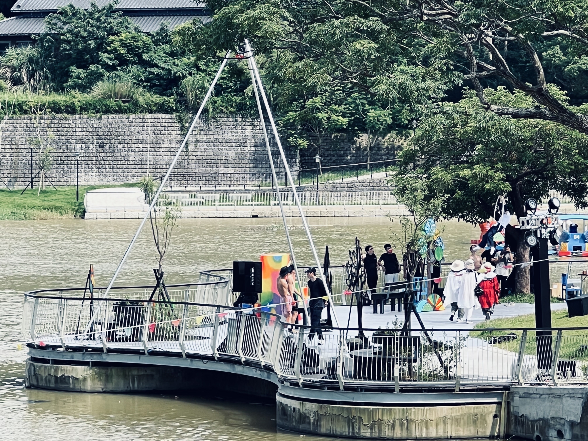 7月2日開鑼的湖光島藝術節,已經被傳為林智堅在市府的「類畢業晚會」,市府一定要用心光鮮亮麗完美演出,浮動垃圾埸慘不忍睹災情,經過緊急動員環保局和委外廠商清理,在傍晚已經大致化解,晚會的音響和無人島白色造形動物已經準備妥當。