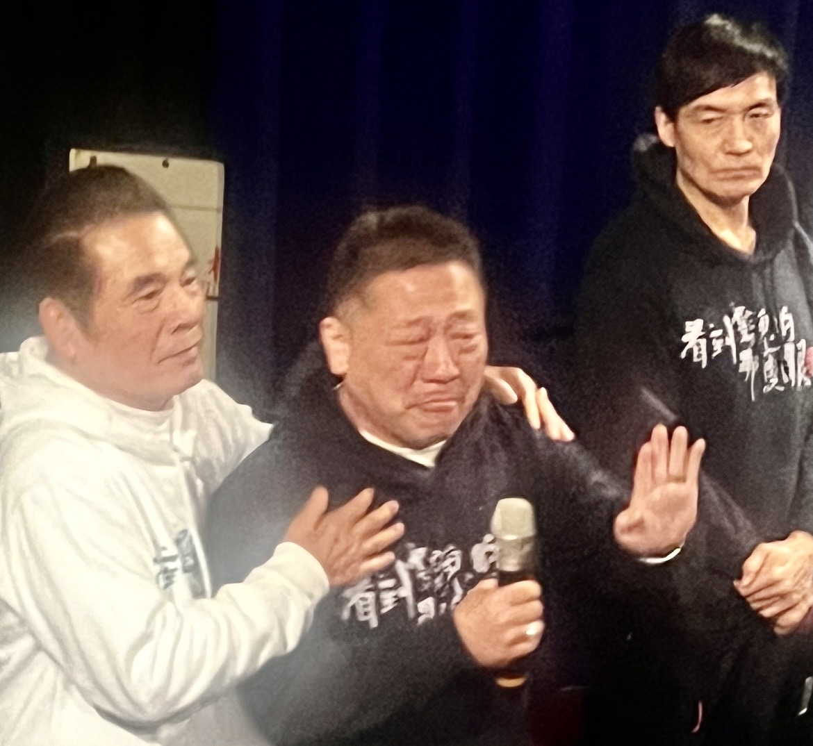 後續演員分別致謝詞後,王重正拿起麥克風突然感性昇華情不自禁,激動落淚泣不成聲,久久不能自己,一旁的老牌演員雷洪,立刻上前安慰穩定情緒。