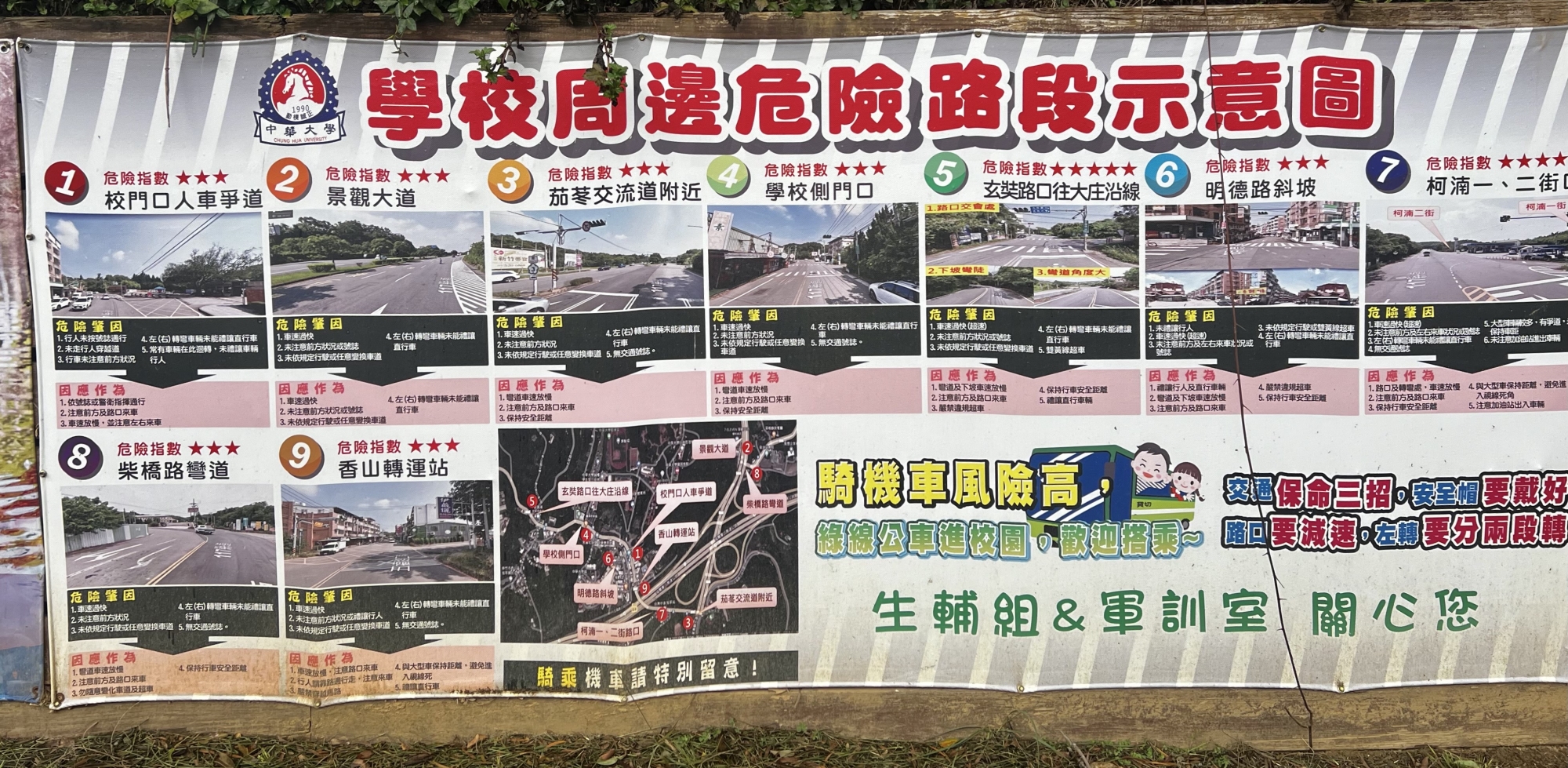 中華大學校園張貼危險路段提醒同學注意行車安全 何高祿攝