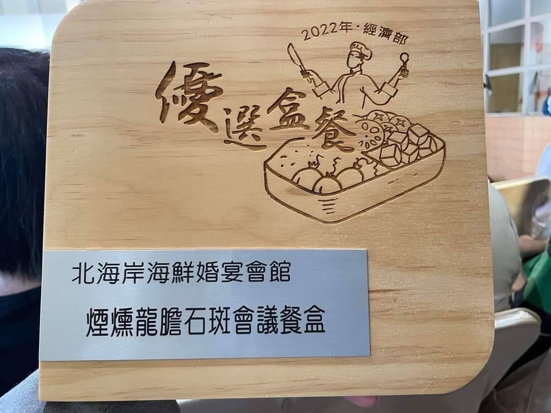 北海岸海鮮婚宴會館「煙燻龍膽石斑會議餐盒」,榮獲2022年經濟部商業司「米食盒餐節優選盒餐獎」。