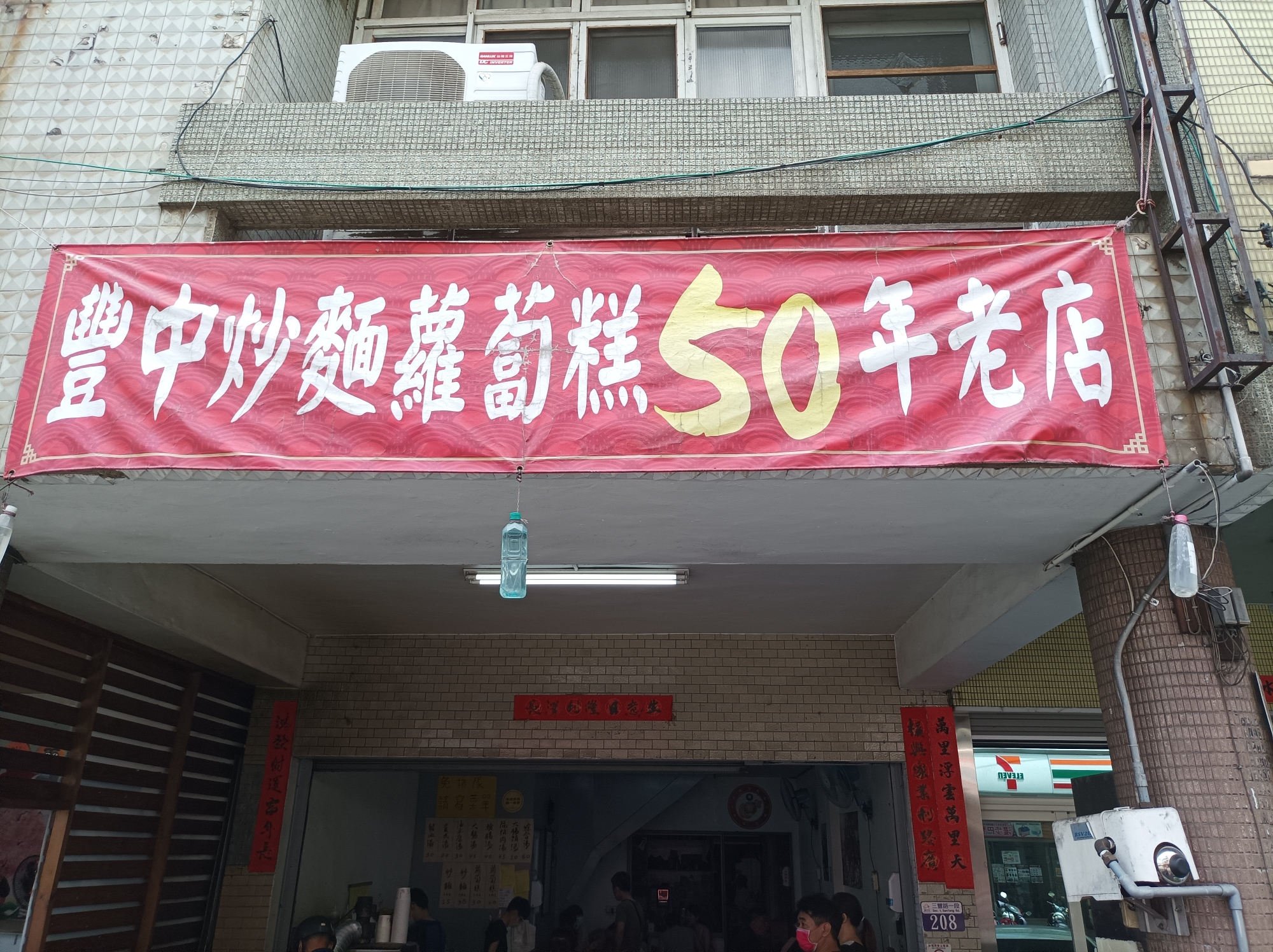 豐中炒麵蘿蔔糕50年老店的招牌布簾十分明顯。