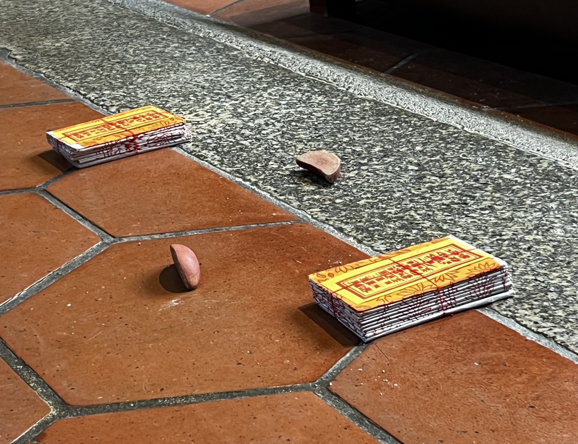 到廟裡拜拜,點香跟神說心事,常以各種方式和神溝通,最常見擲筊,筊擲出落地有多種組合代表不同意思。極少見為立筊,如果擲出立筊都認為是神蹟,有時廟方還會拉個紅線或是排金紙陣圍起來,大家一起見證,分享難得奇蹟。
