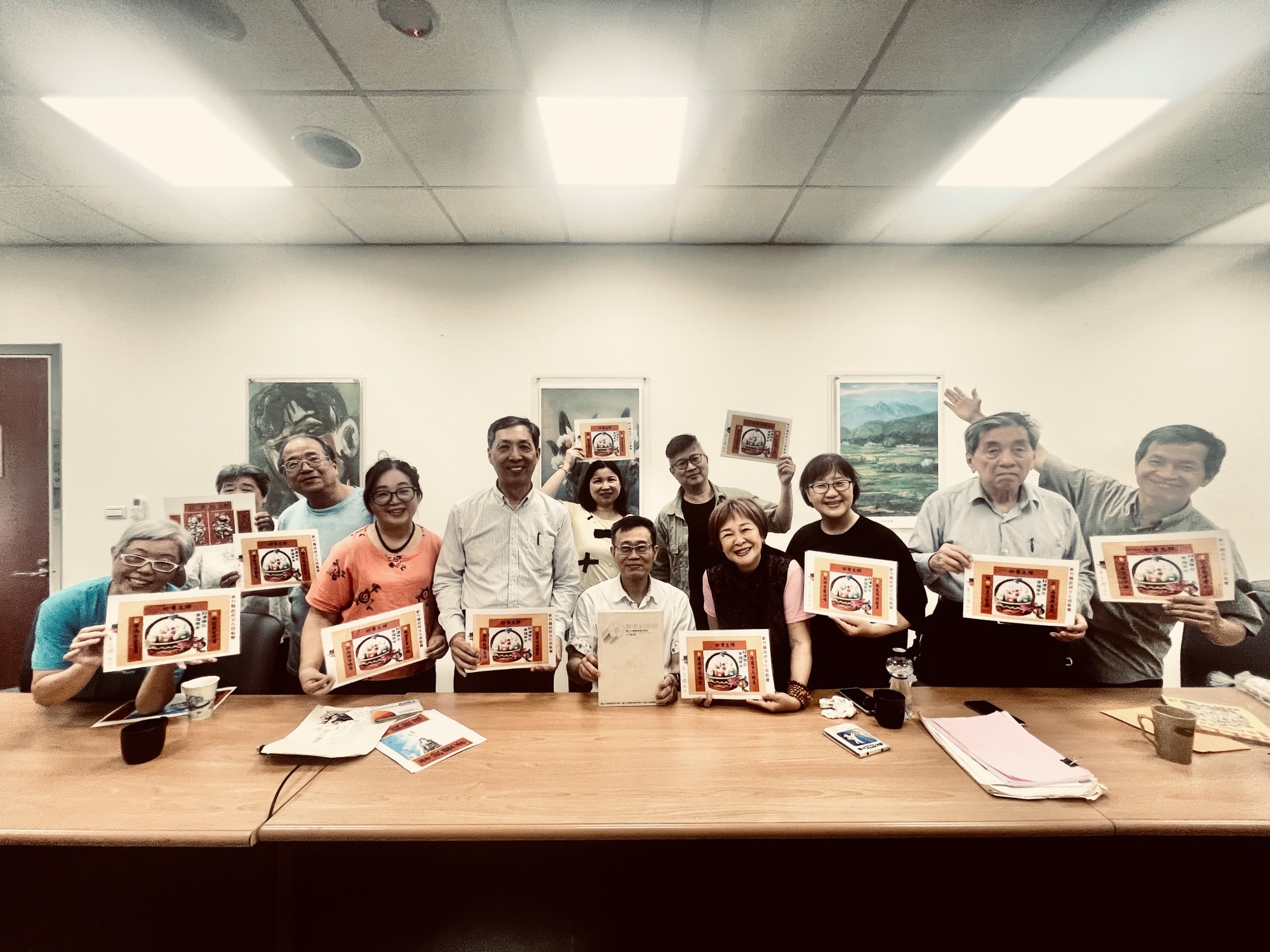 章宗耀特別設計給來訪校友學長姐妹敬謝卡,贈送給帶隊的新竹校友會長蔡世明和校友們作為紀念,並且以校友的名字做成吉利對聯,感謝校友們溫馨支持和提攜。